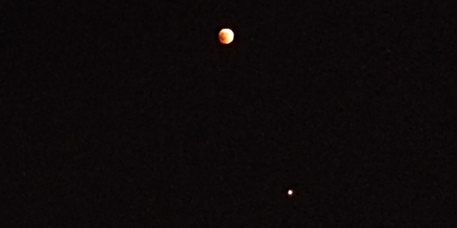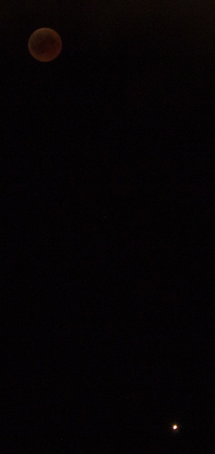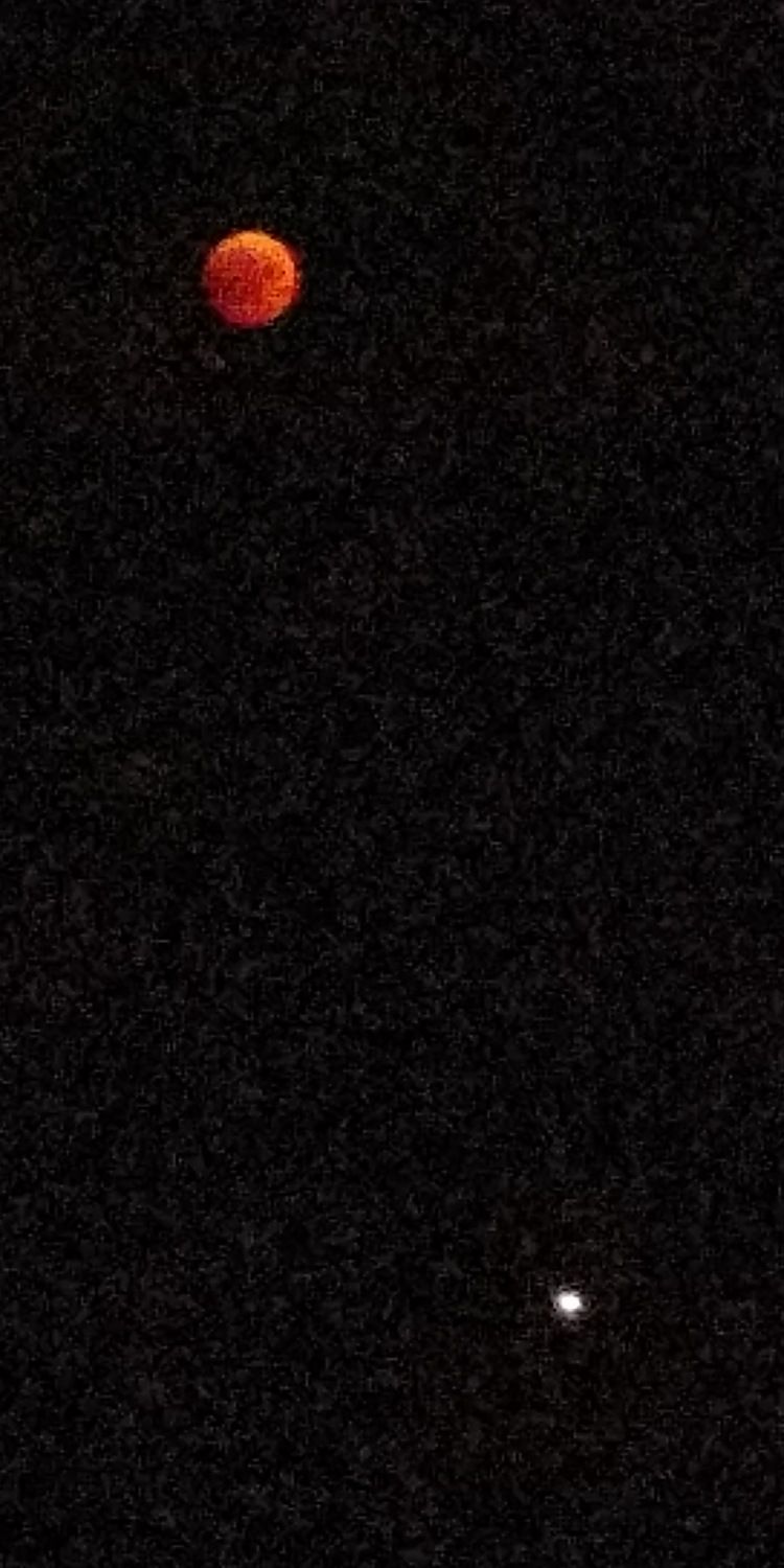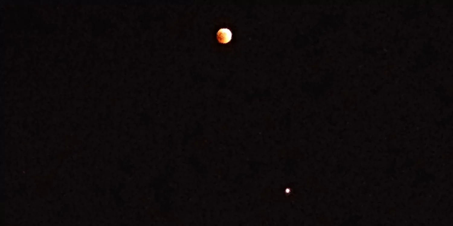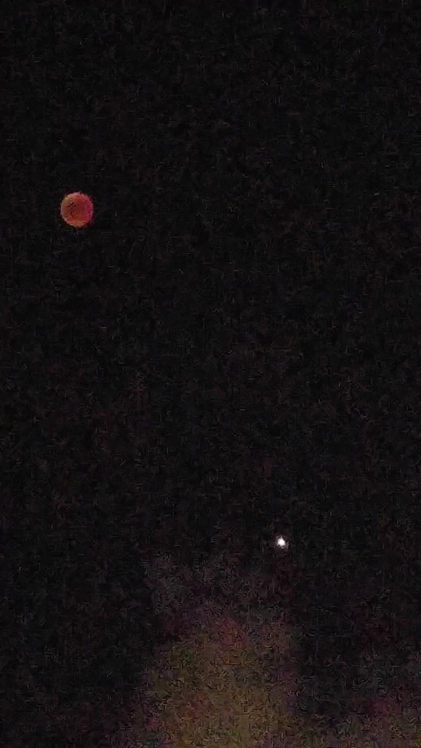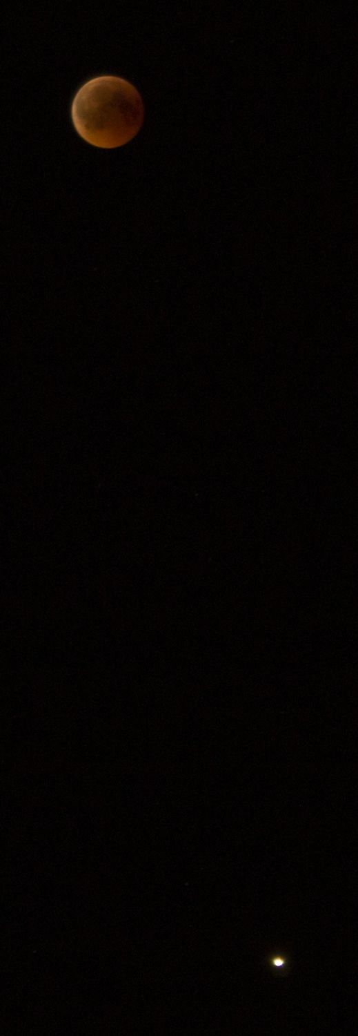 - הירח האדום בשיאו של הליקוי עם המאדים שנמצא מתחתיו אבי - פרדס כץ