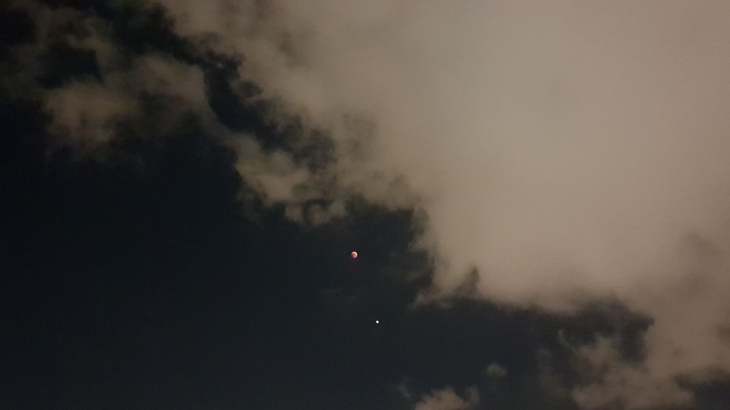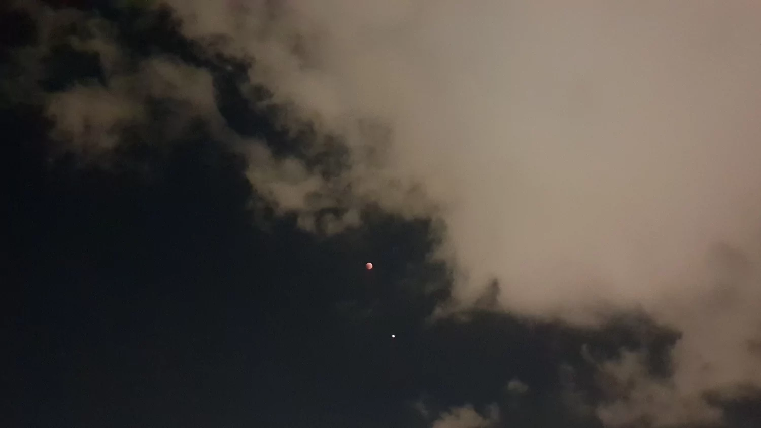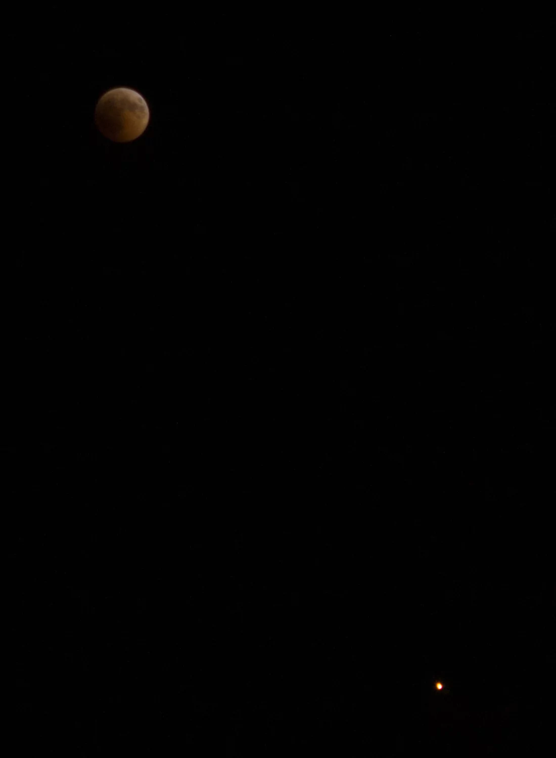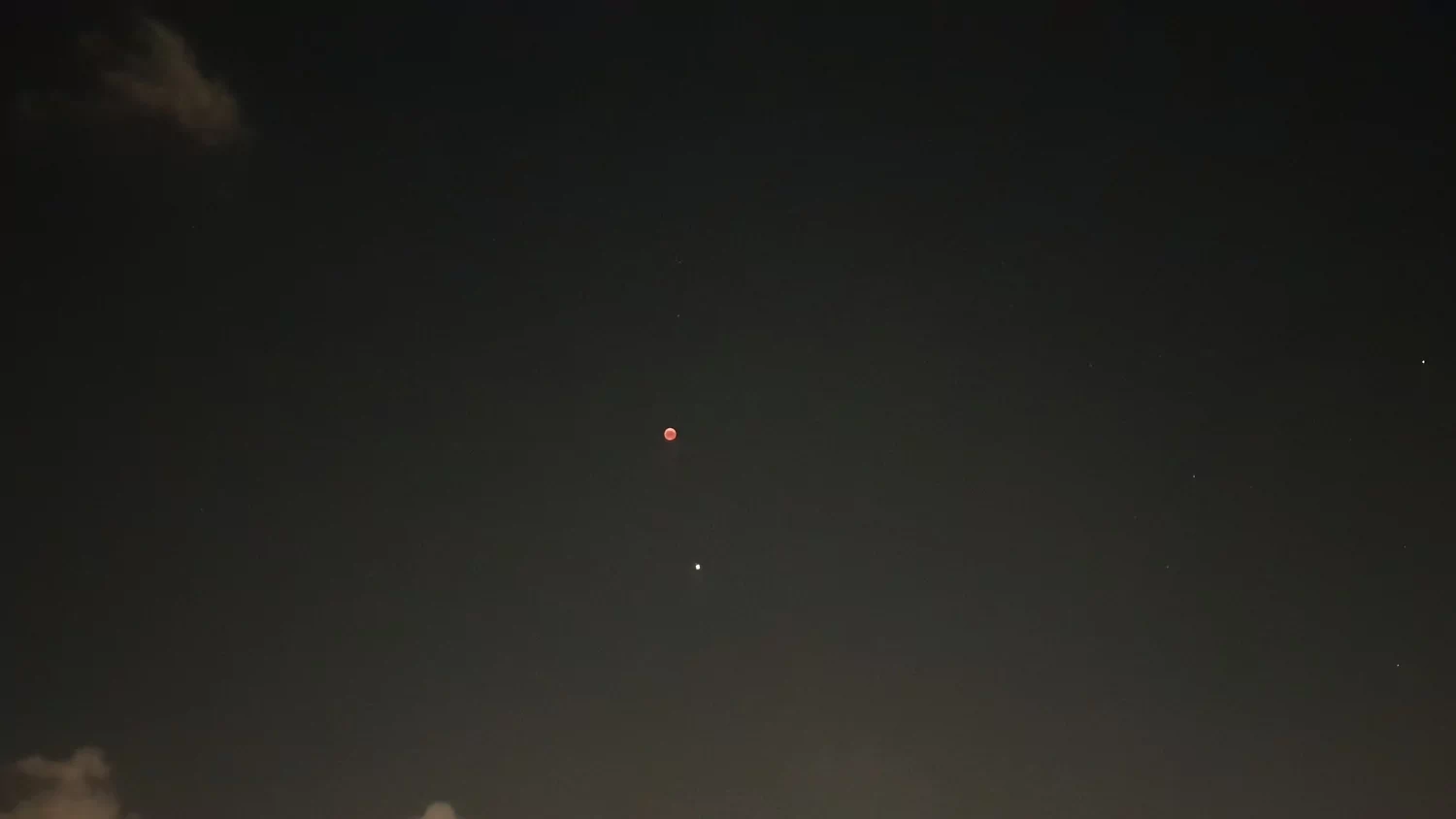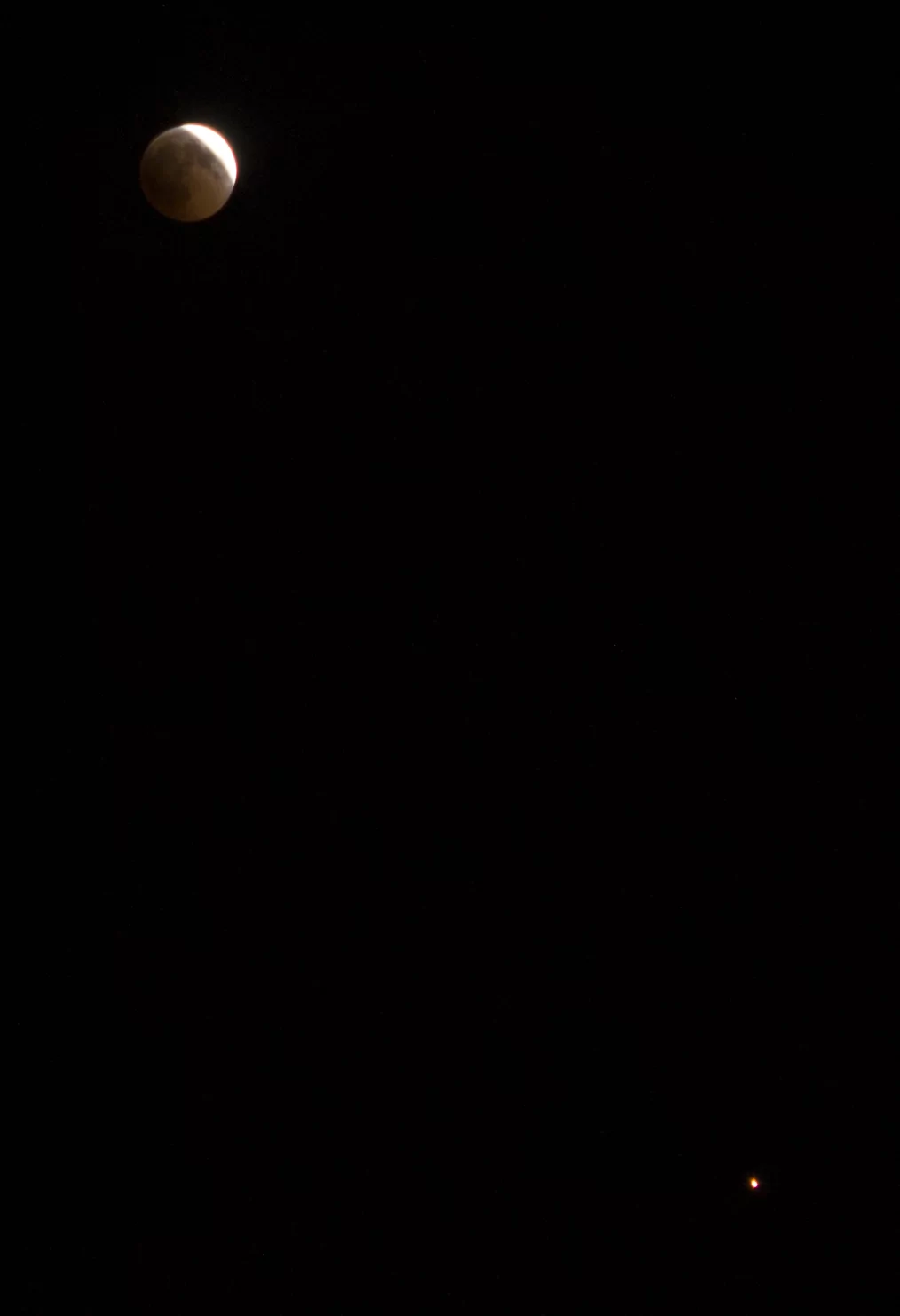 - הירח האדום בשיאו של הליקוי עם המאדים שנמצא מתחתיו אבי - פרדס כץ