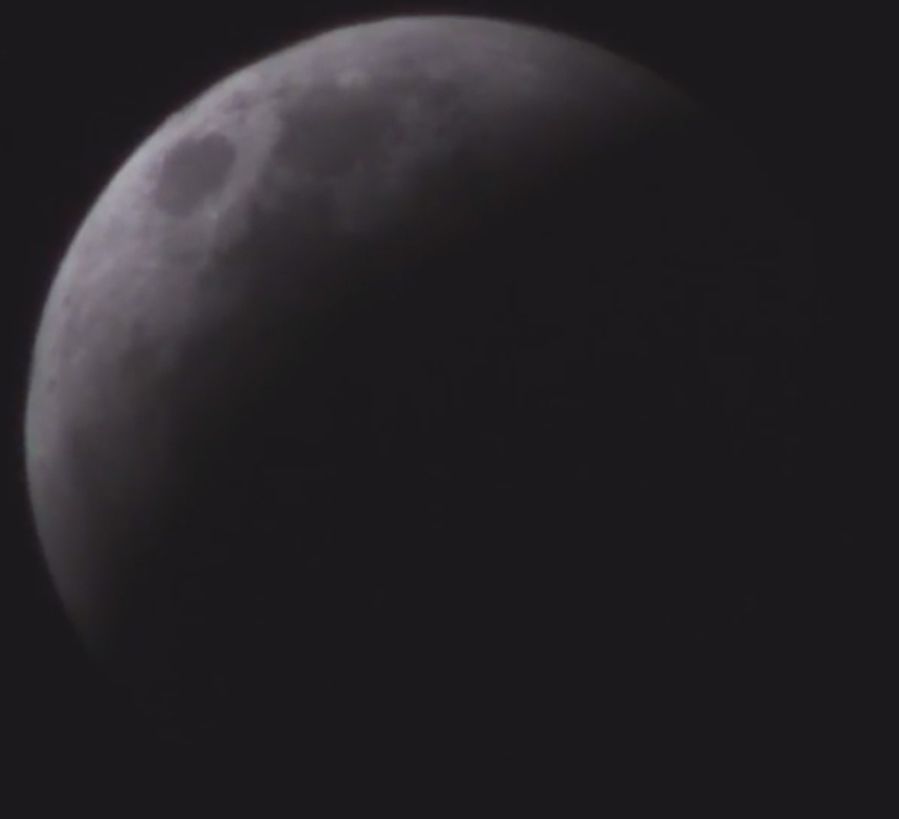 הוא עדיין בתוך חרוט הצל המלא. אבל רואים שהליקוי המלא מתקרב לקיצו. בעוד כ-10 דקות הוא יתחיל לעזוב את חרוט הצל המלא.