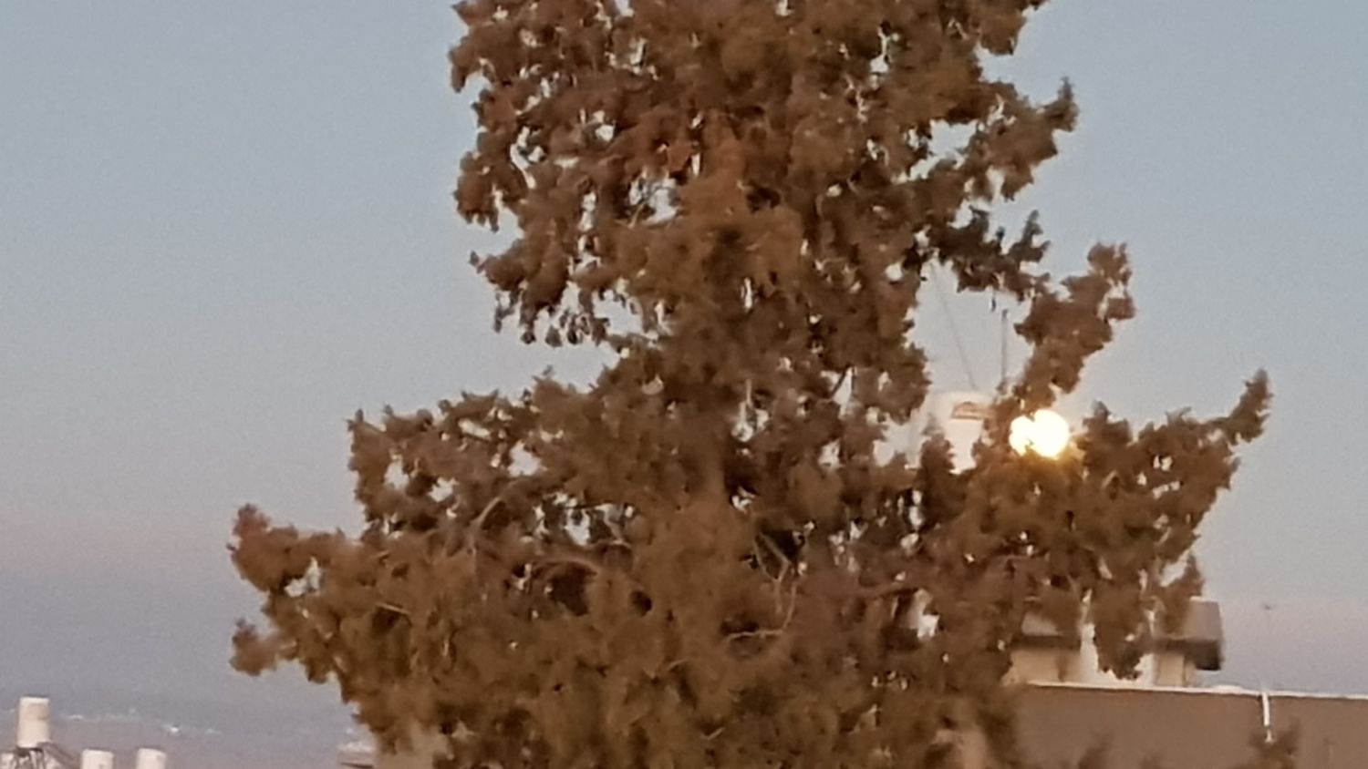 - הירח כרגע, קרוב מאד לסיום הליקוי, עדיין יש צל בצד המערבי אילן