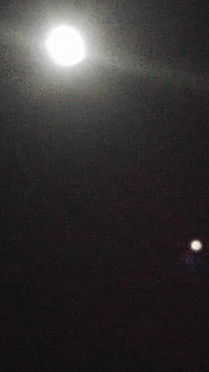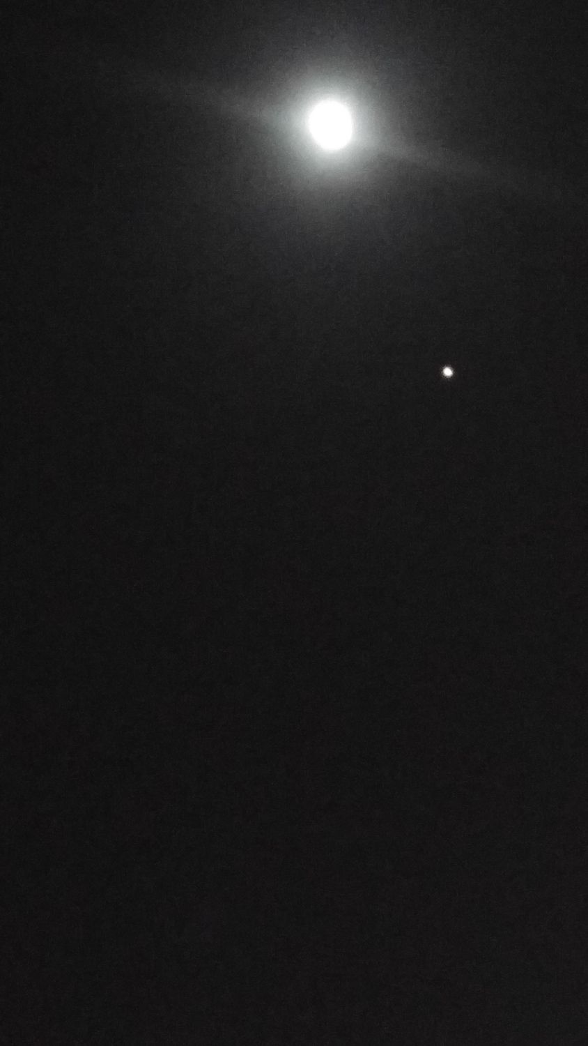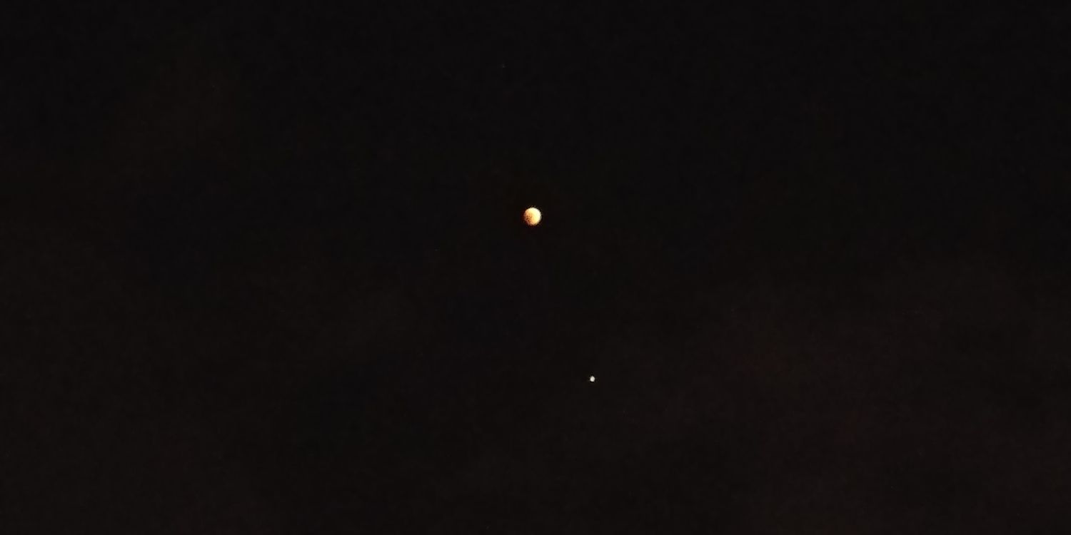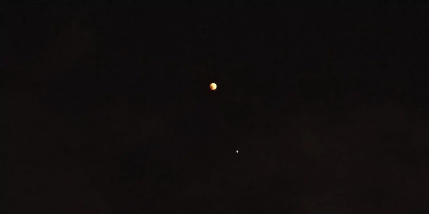 הירח משמאל למעלה, מארס מימין למטה
