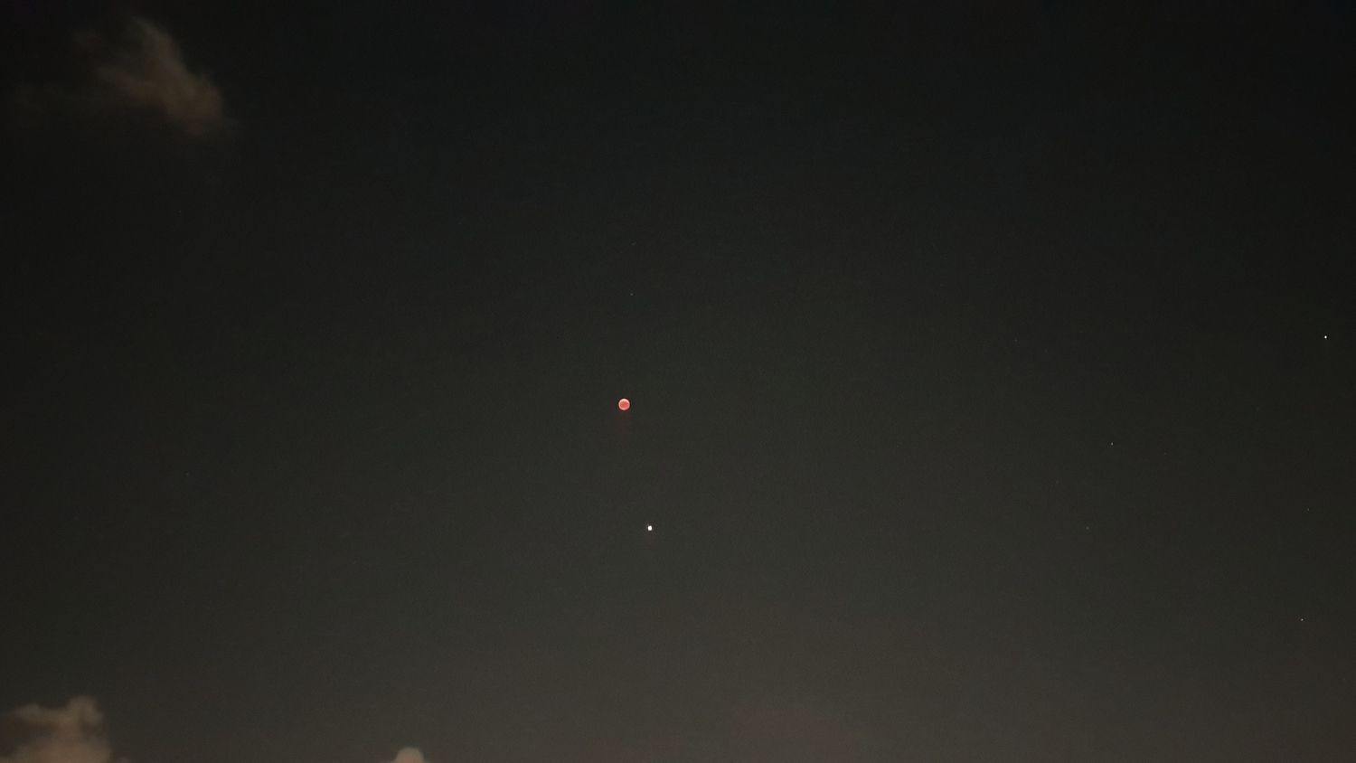 ניתן לראות בתמונה את הירח ואת כוכב הלכת מאדים מצד ימין למטה
