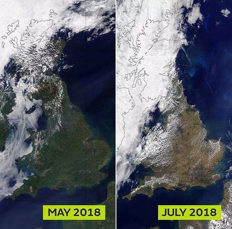 שמטאורולוגים עולמיים מזהירים מפניו כבר עשרות שנים כבר קורה, פשוט לא ייאומנו ההבדלים בטמפ' בין הקיץ הקודם לנוכחי, כמעט בכל הימים הפרש של לפחות 10° וגם תמונות הלווין, בחודשיים בסה''כ אנגליה הצהיבה מרוב יובש, זה נורא