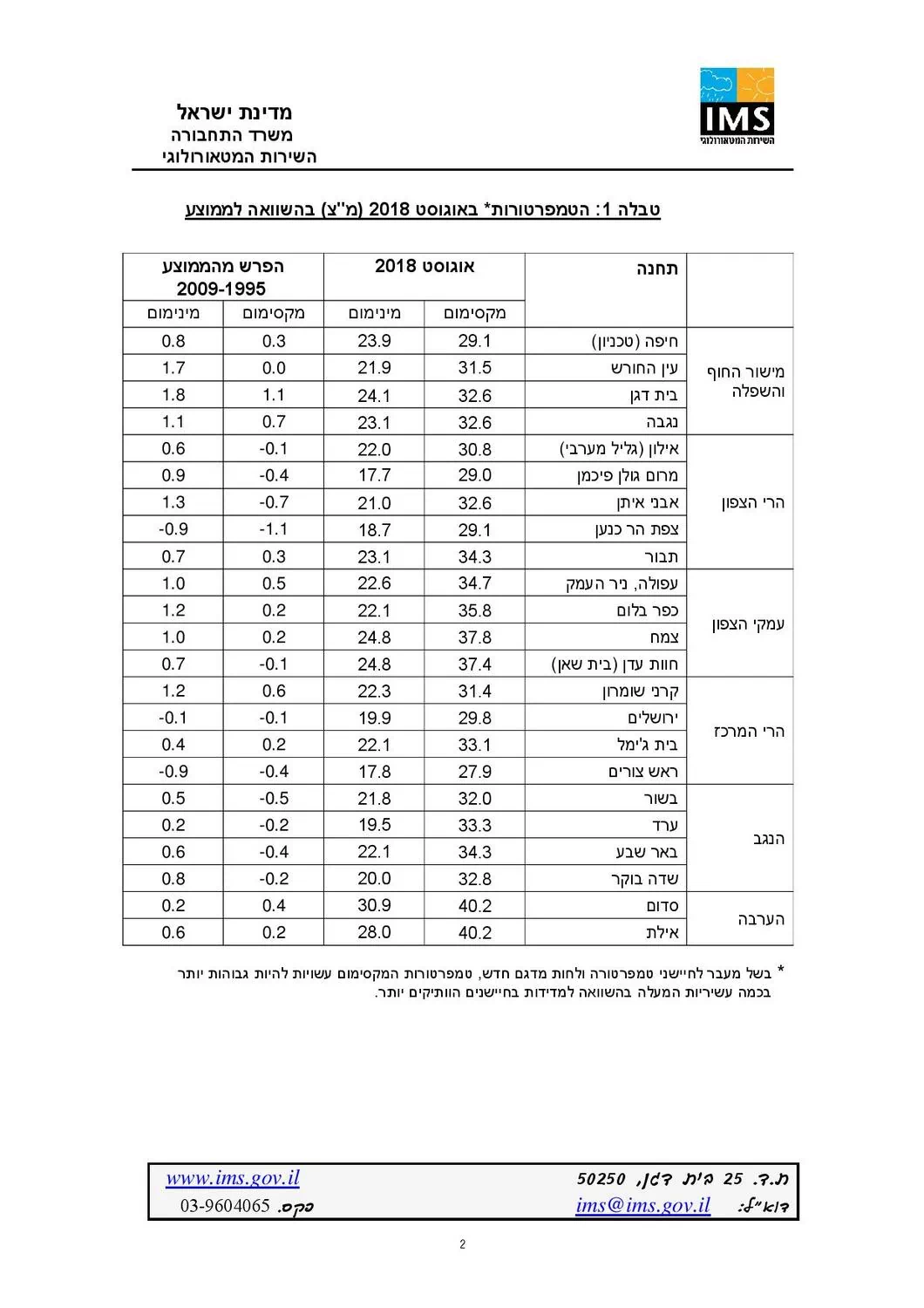 - סיכום חודש אוגוסט ע"י השירות המטאורולוגי Weather2day