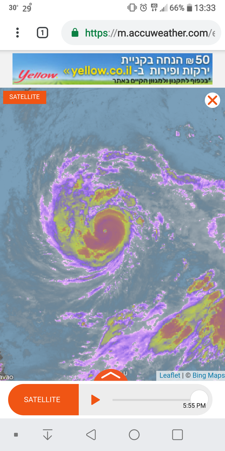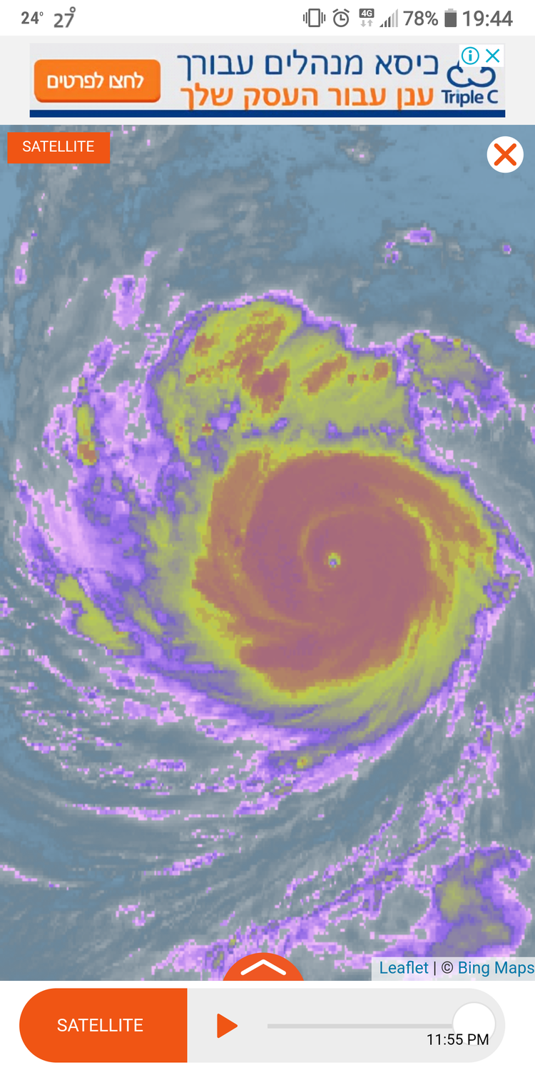 הטייפון התחזק ב-6 שעות בערך ב-2 דרגות! כעת הוא בדרגה 4! רוחות קבועות מעל 200 קמ''ש!