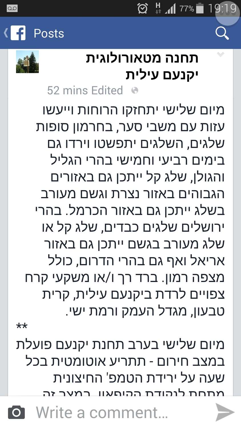 תחזית לפי התחנה המטאורולוגית ביקנעם (מצורפת תמונה):