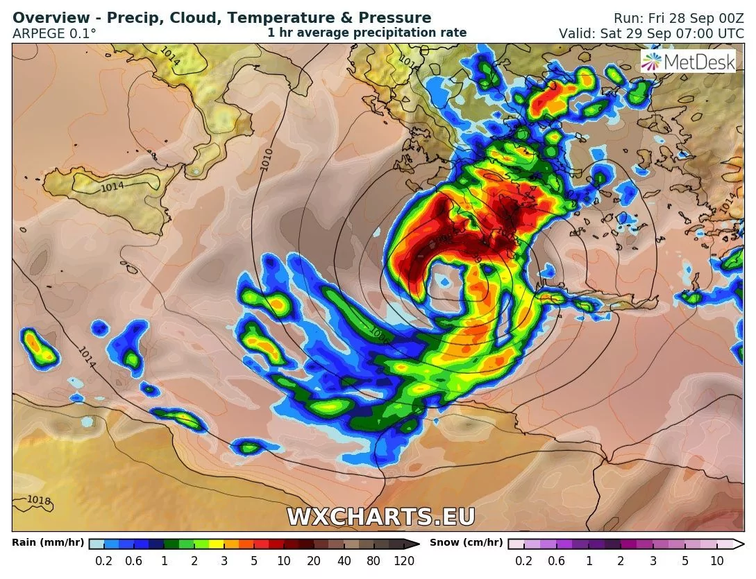 - עדכון לסופה שפוגעת כרגע בדרום יוון עם תמונות שקיבלנו מכרתים וגם תחזית גשם Weather2day