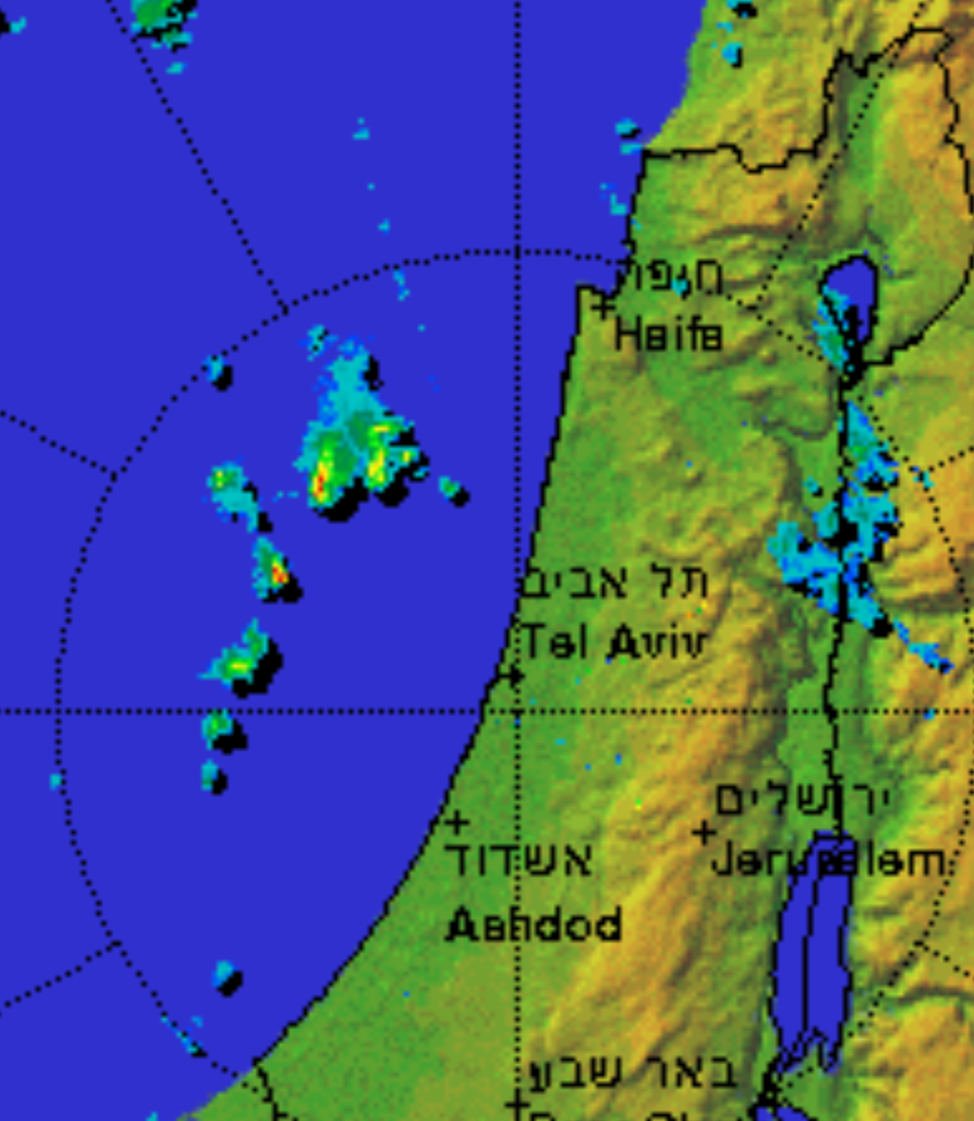 מאמש העננים מתפתחים 100 ק"מ מקו החוף ודועכים לפני כניסתם מאכזב מאוד
