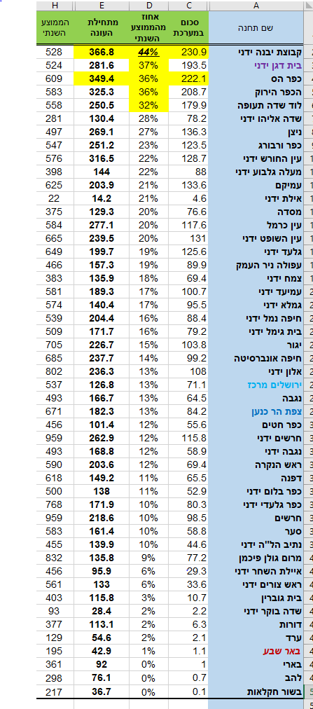- מובילי האחוזים מהכמות השנתית (רשימה חלקית לכל המקטרים): חנוך א