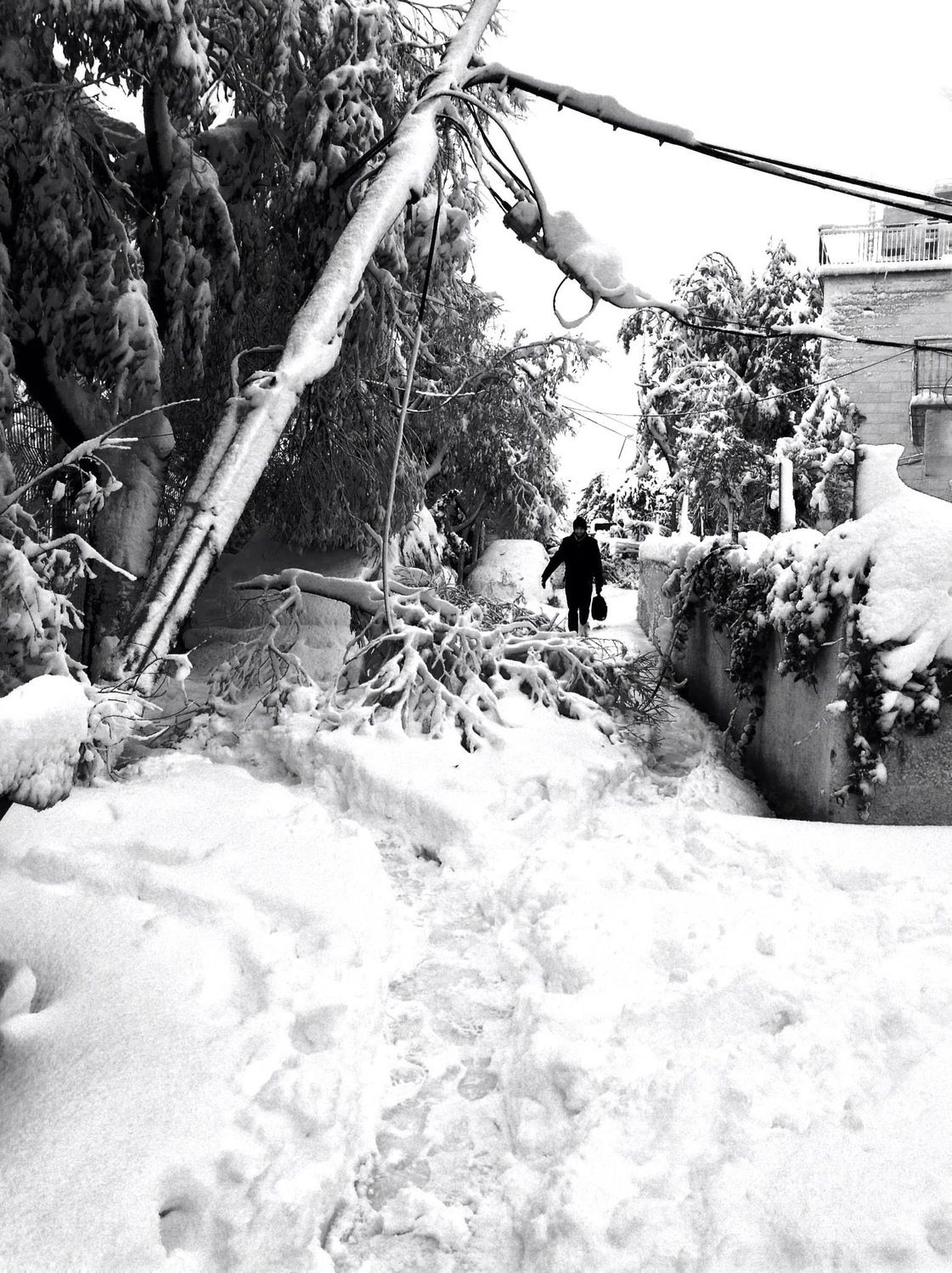 תמונות מהימים הראשונים, בלי חשמל. תמונה אח מהשבוע אחרי, והשלג שלא הפשיר