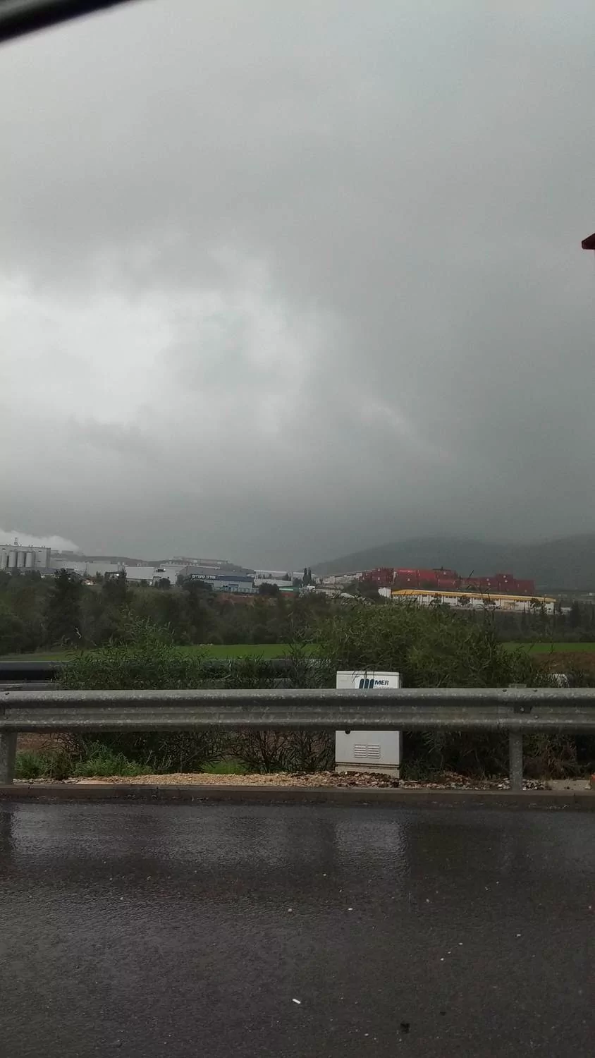 כבר פעם שלישית בשעות האחרונות ששחור מאוד נכנס מדרום לנו אפילו נשמעו רעמים עכשיו ואנחנו מקבלים תקצה עם קצת גשם.