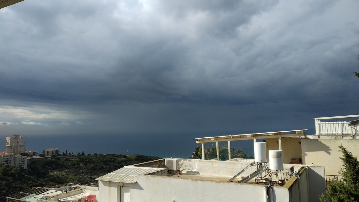 כניראה העננות שהייתה מול החוף במרכז התפתחה והגיע לכאן (ראו תמונת מכם שצוות האתר שלח )