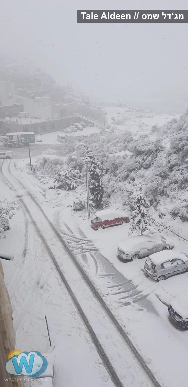 גשמים עזים יורדים, נחלי ומפלי הגולן שוצפים. שלג כבד מצטבר במהירות בחרמון וגם במג'דל שמס. הר בנטל ומרום גולן אף ראו שלג קל שהצטבר לשכבה דקיקה בשעות הבוקר (נמס ברובו).