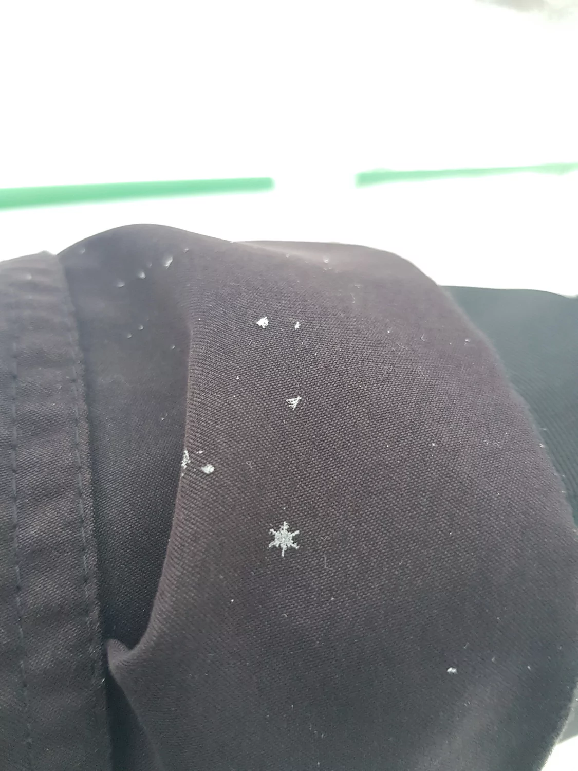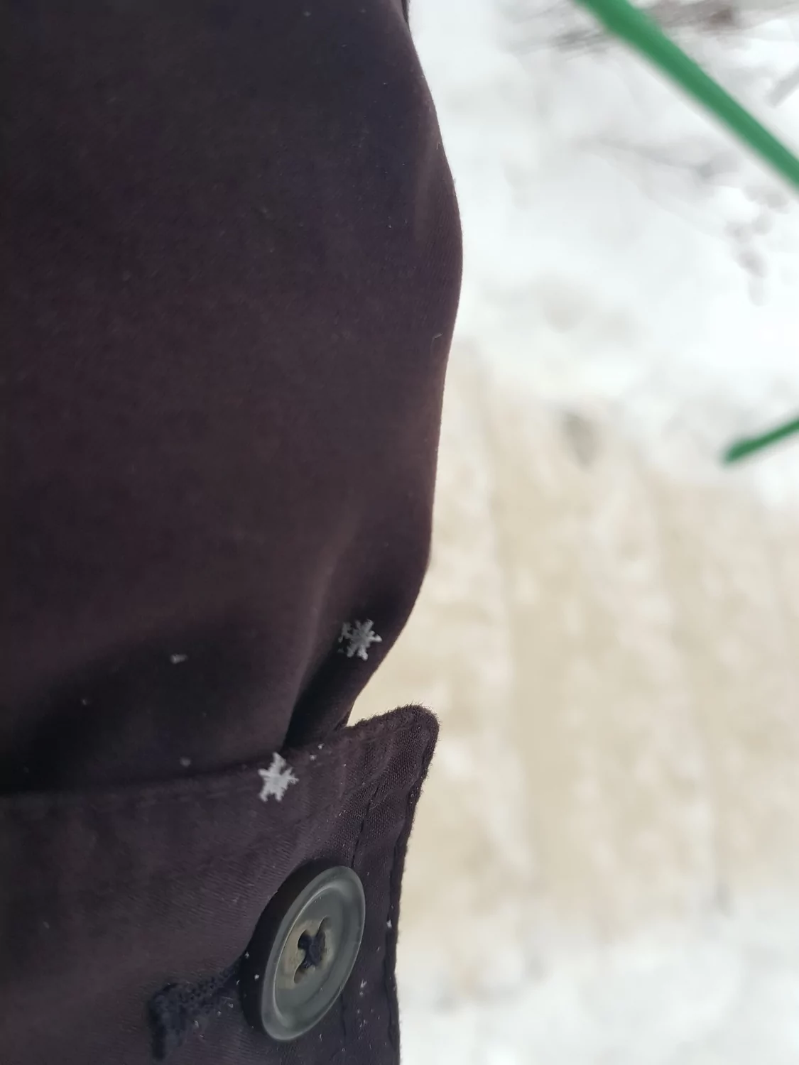 פתיתי שלג אירופאים על השרוול שלי