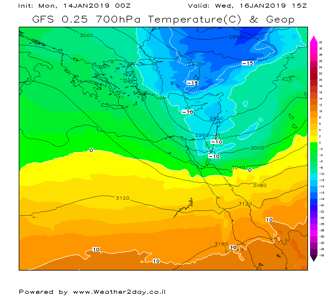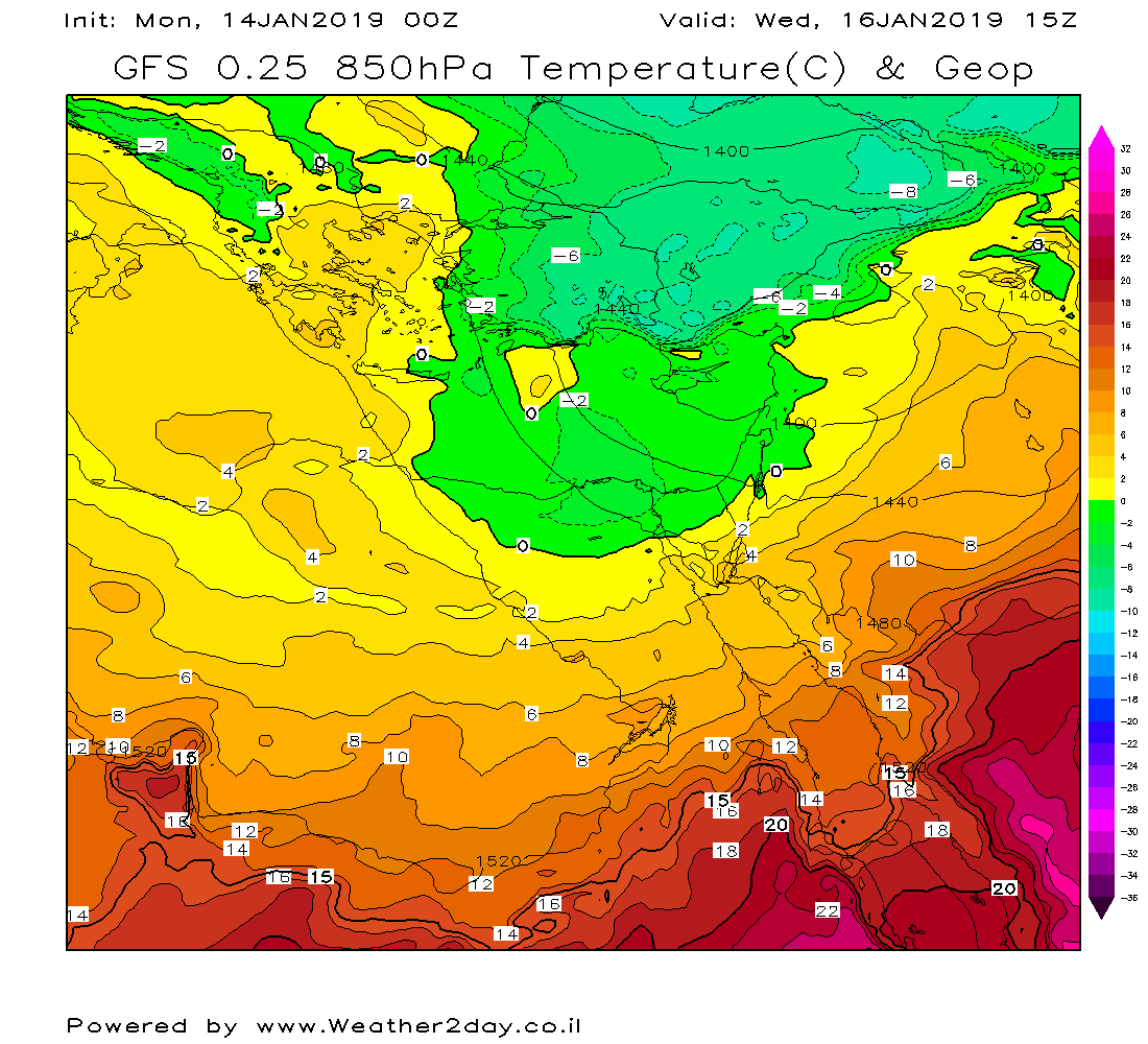 850 התחמם מאוד בעדכונים האחרונים, שיא הקור במפלס זה מגיע ממש עם סיום משקעי המערכת.