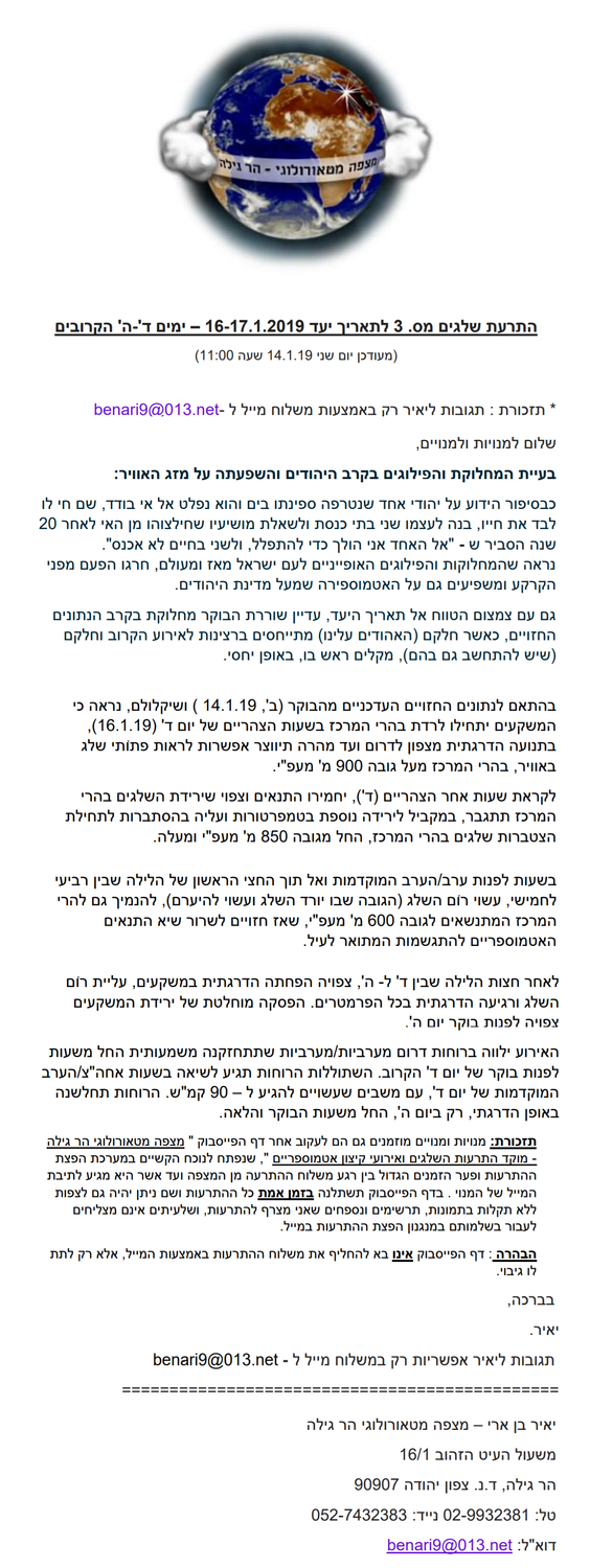 ניתנה ע"י החזאי הבכיר יאיר בן ארי ממצפה מטאורולוגי הר גילה