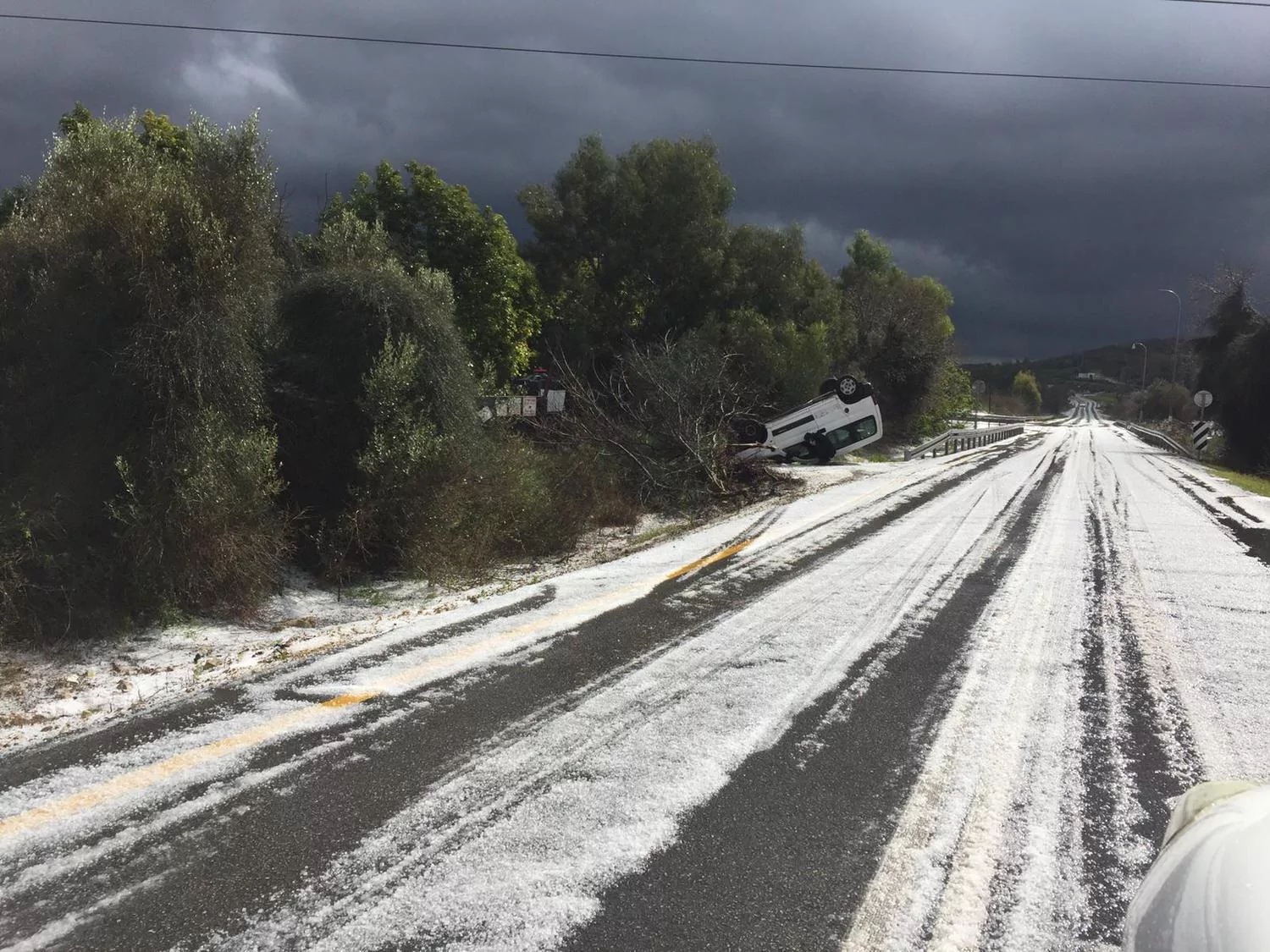 נסעתי בכביש 6 לכיוון צפון בין עירון לעין תות ונתקלתי בשוליים בהמון המון ברד שהצתבר . השדות לבנים לגמרי.