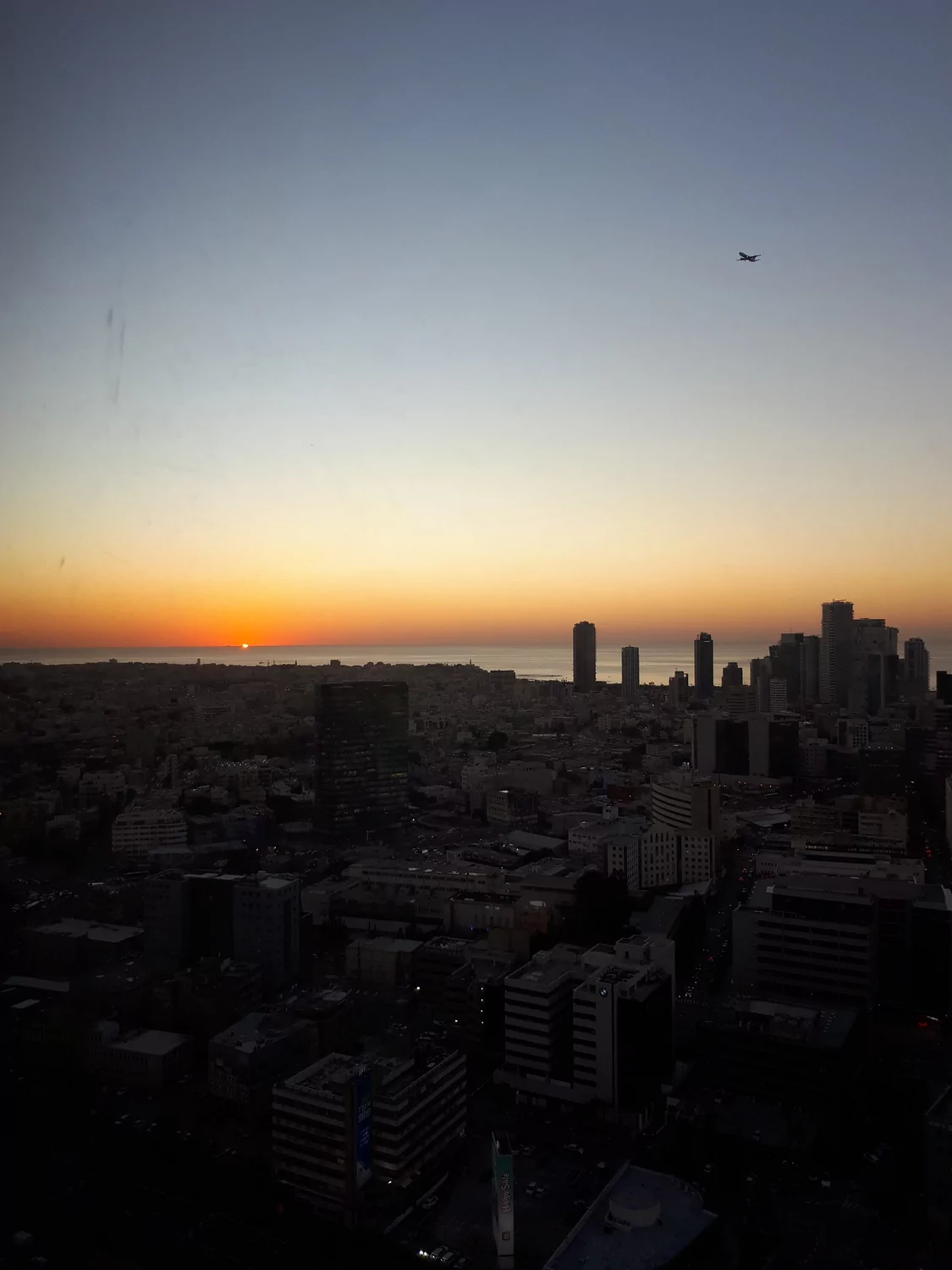 אבל לא הצלחתי בגלל העננות הגבוהה. אז אני מצרף תמונת שקיעה מהמגדל שצילמתי לפני מספר ימים. כנראה גם המטוס רצה להיצטלם (חושב שהוא פוטוגני)