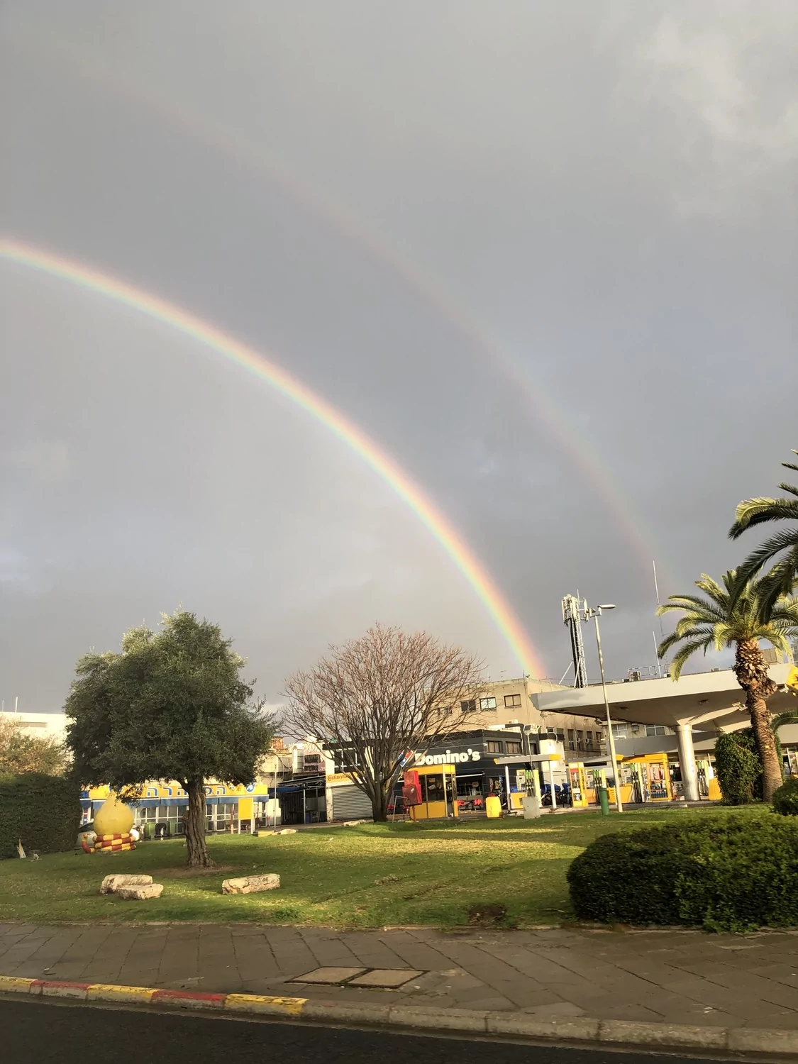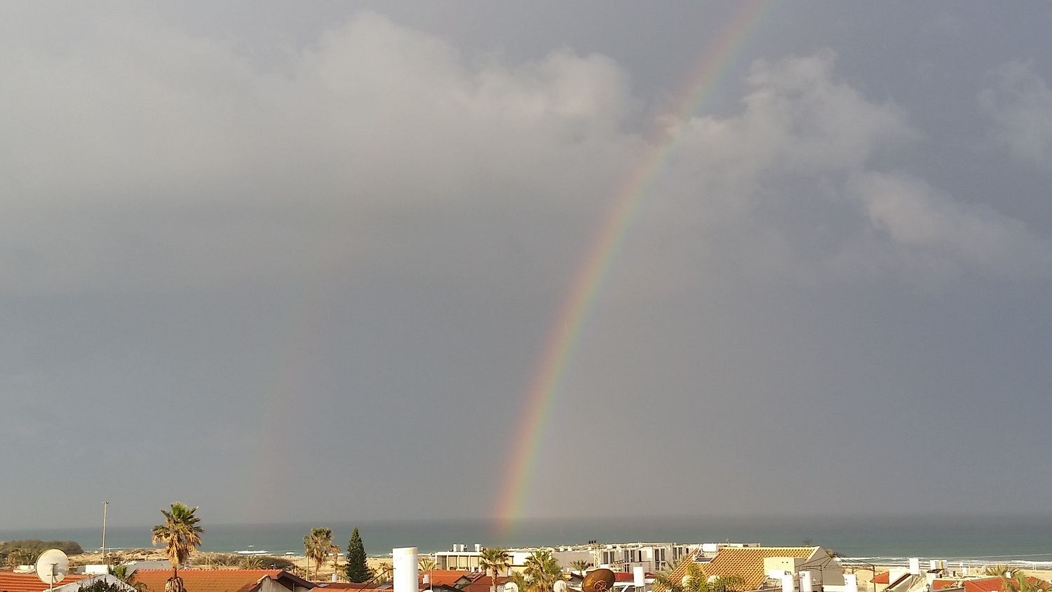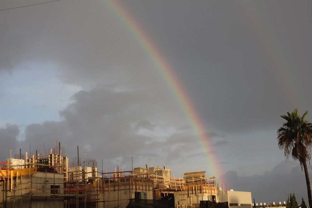 - בסוף רק גשם קל שנגמר עכשיו מעונן חלקית אבל קשת כפולה שלמה דובוני