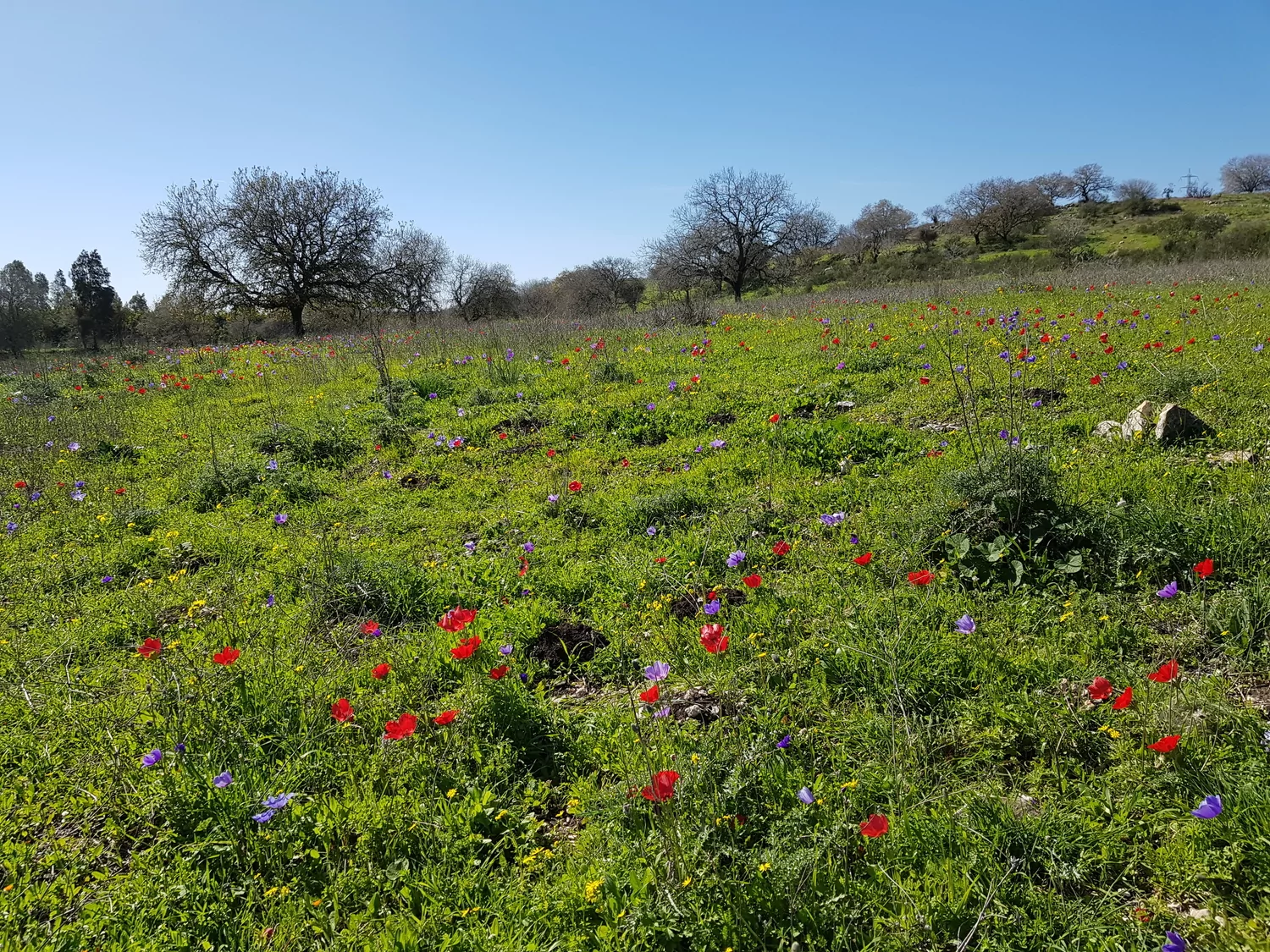 - כל האזור סביב כפר תבור מלא מטעי שקדיות. גם בנחל תבור הזרימה יפה והתחילו התורמוסים יואב