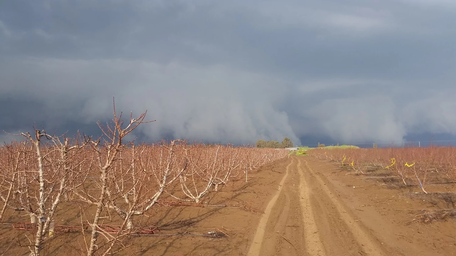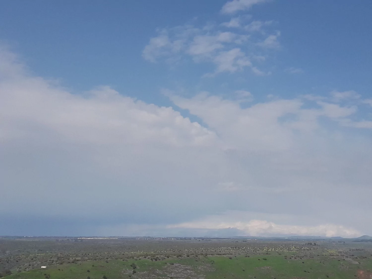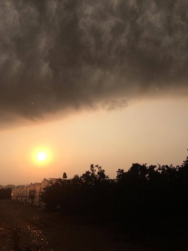 רואים בתמונה את הקו שמפריד בין הסופה של הגשם ברד חורף לשמש קיץ