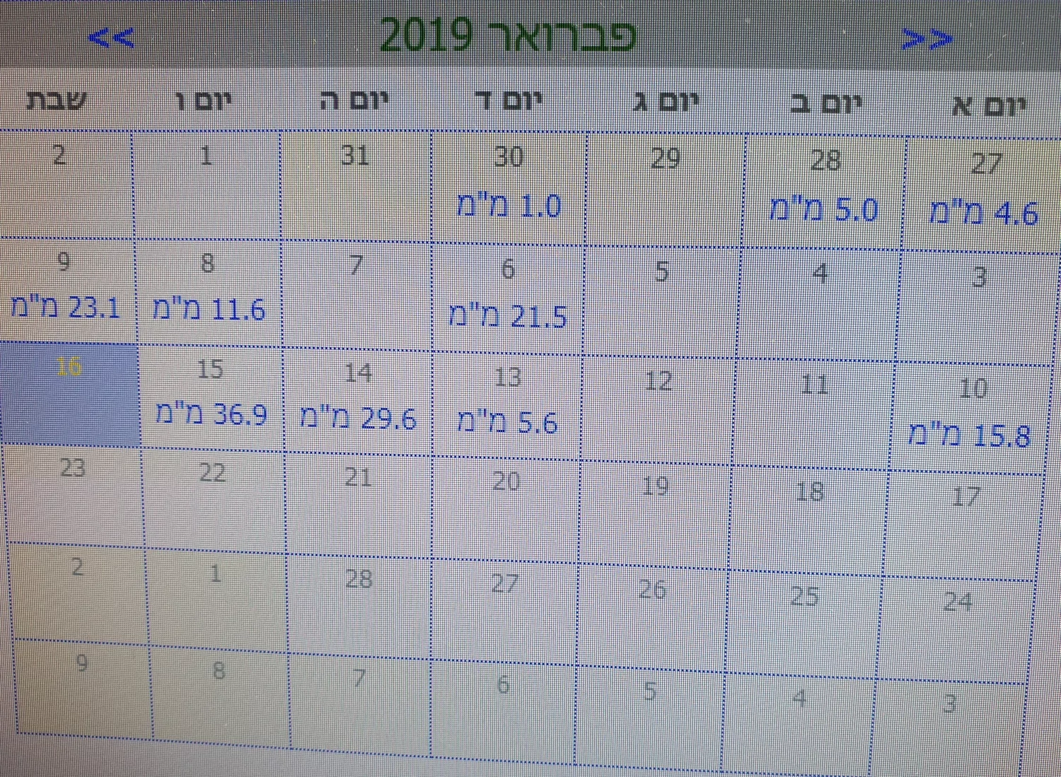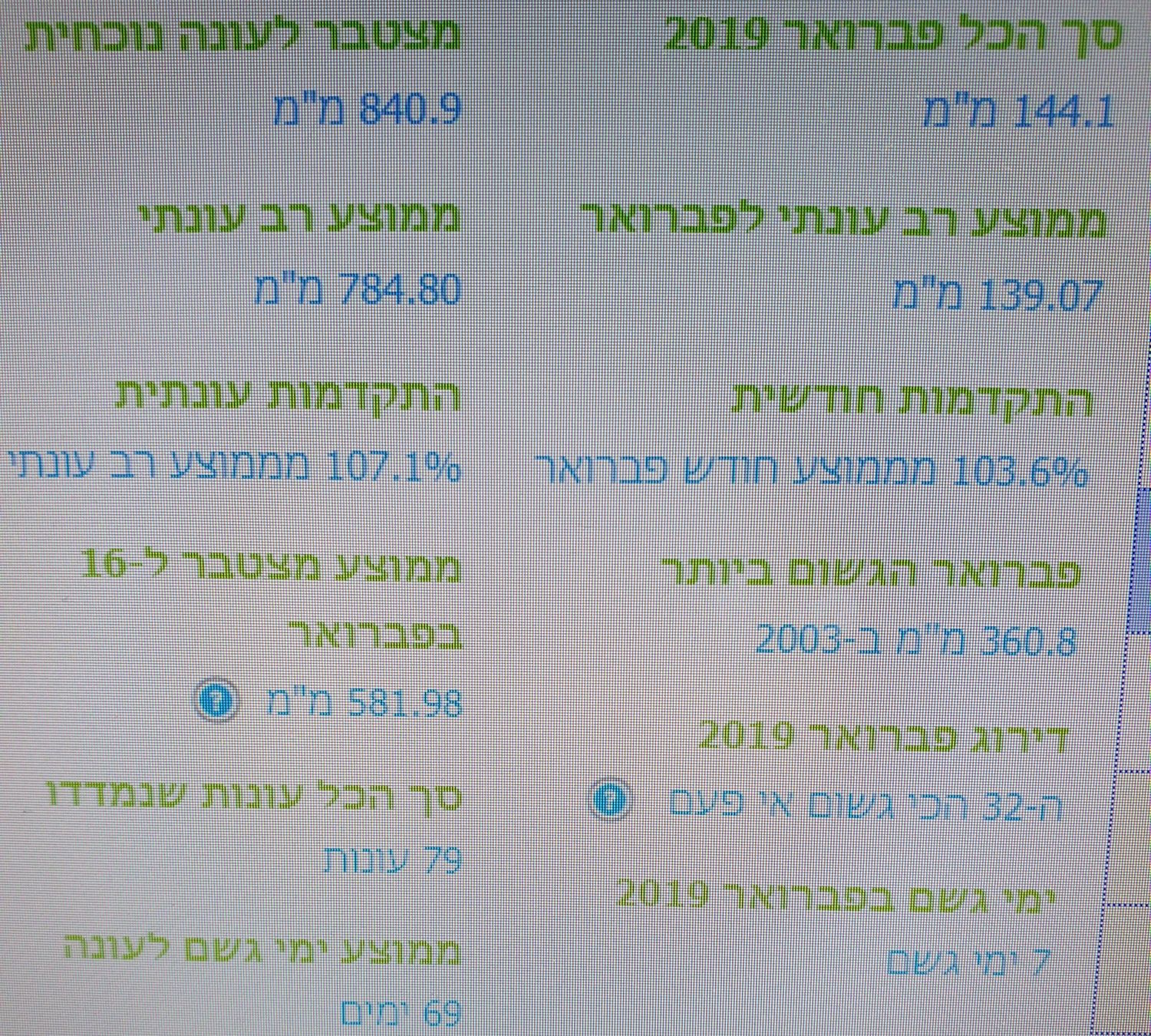 החודש - 56.3 (ממוצע לפברואר - 88 ממ)