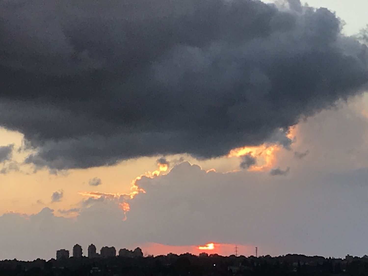 אהבתי את התמונה האחרונה, שלמטה השמש אדומה ובפסגות העננים היא כתומה