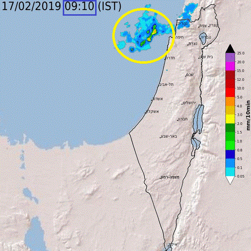 - הגשם הכי חזק היה בשעות 7:30 עד 8:30 בבוקר של חמישי אופיר פרנקו