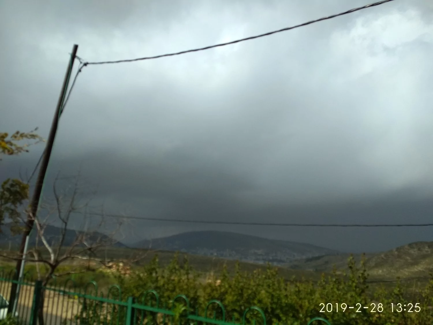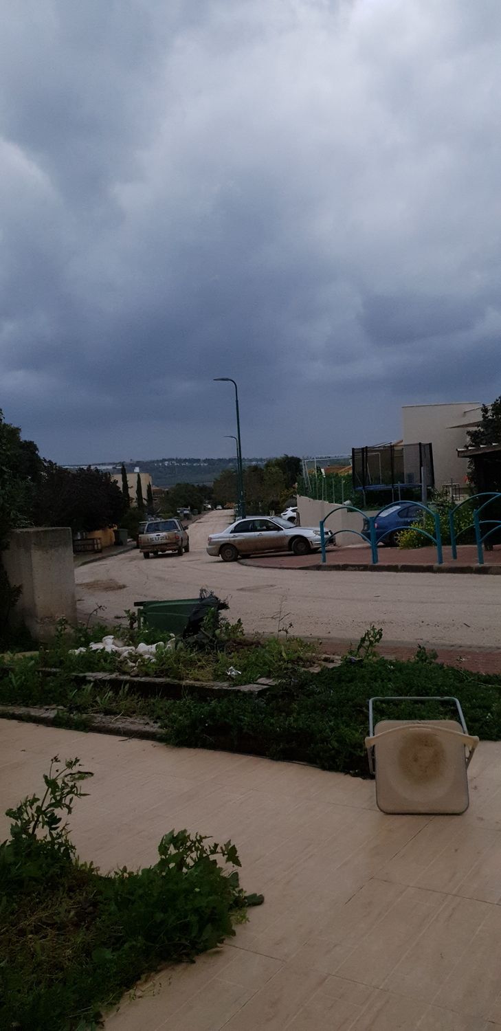 - כאן היה היום סופה רצינית והיה חשוך מאוד במשך שעה שאר היום ממטרי גשם רוחות חזקות ועכשיו ברד עמית