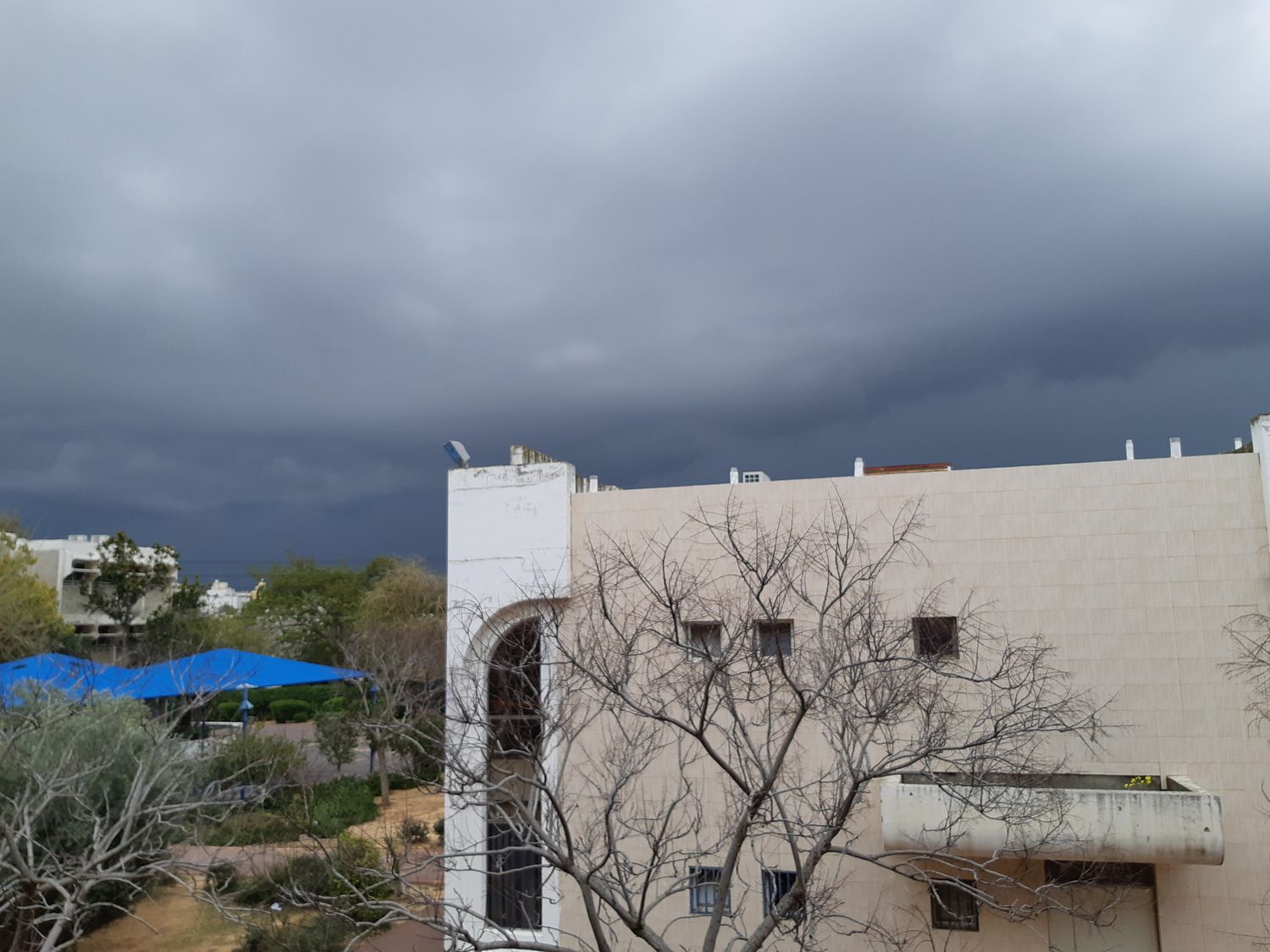- עננים שחורים נפתחים מעל נצרת ושמעתי רעם לפני כמה דקות בשארה