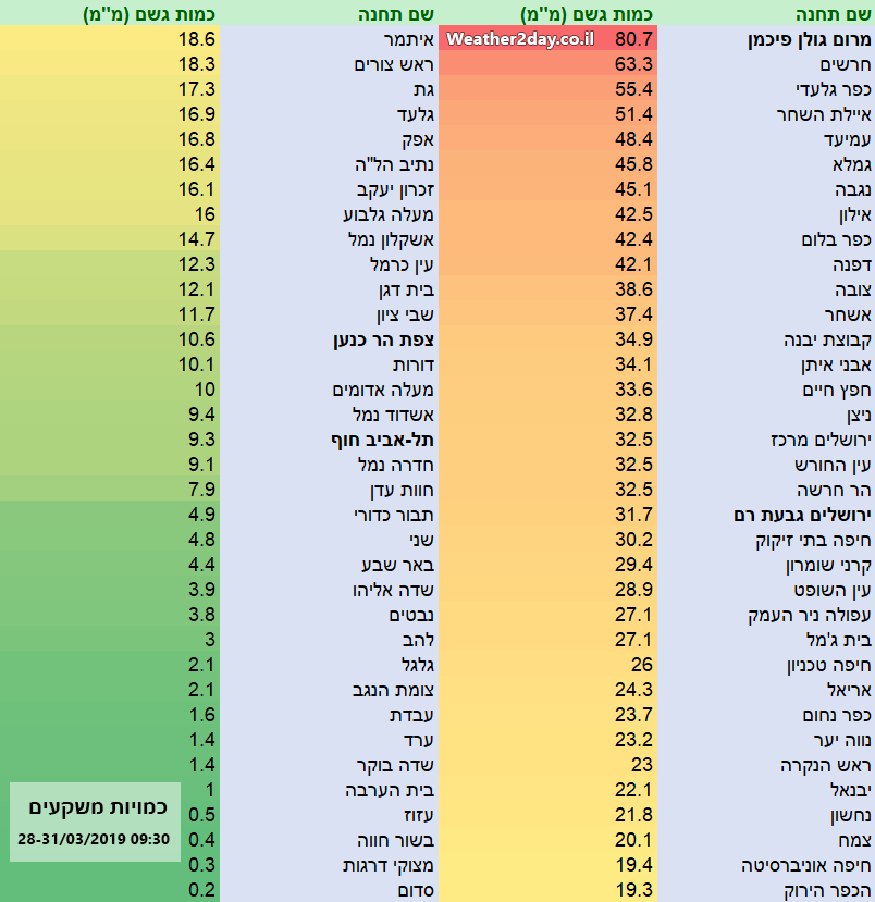 - ☔ טבלת משקעים מעודכנת - כמויות גשם מצטברות מיום חמישי ועד הבוקר Weather2day