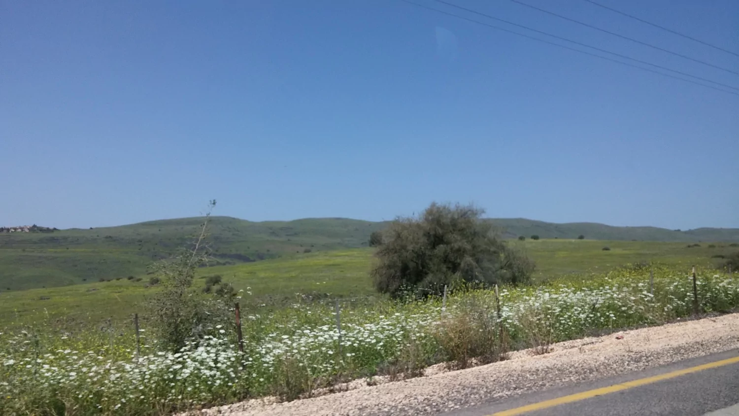 על רקע הרי הגולן הירוקים. תודה ענקית על השיתוף בתמונות מהצפון! כל פעם אני נפעם מחדש מיופיו היחודי של החרמון ובכלל של כל אזור הצפון.