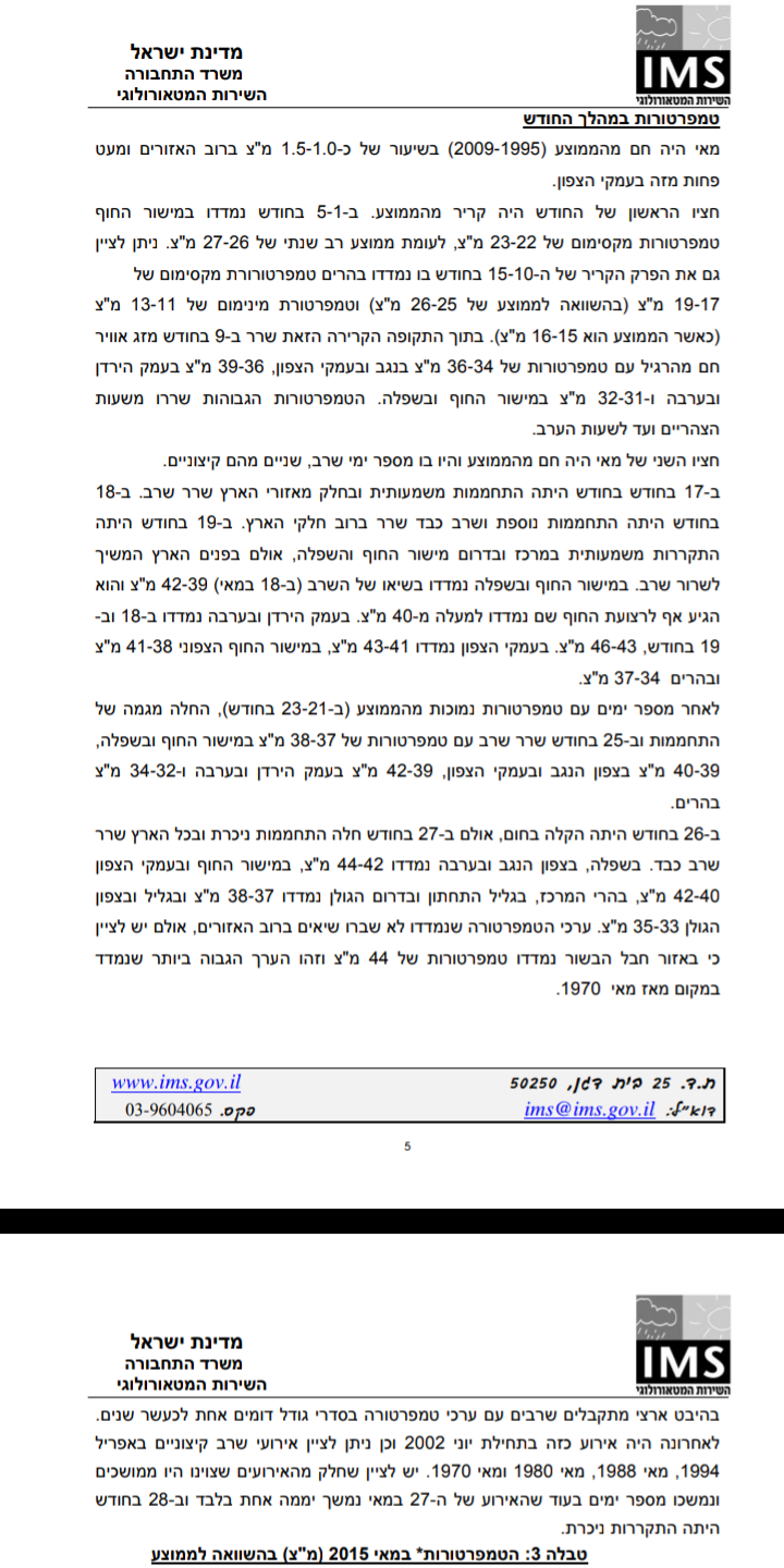 עמוד מתוך סיכום מאי 2015 של השירות המטאורולוגי