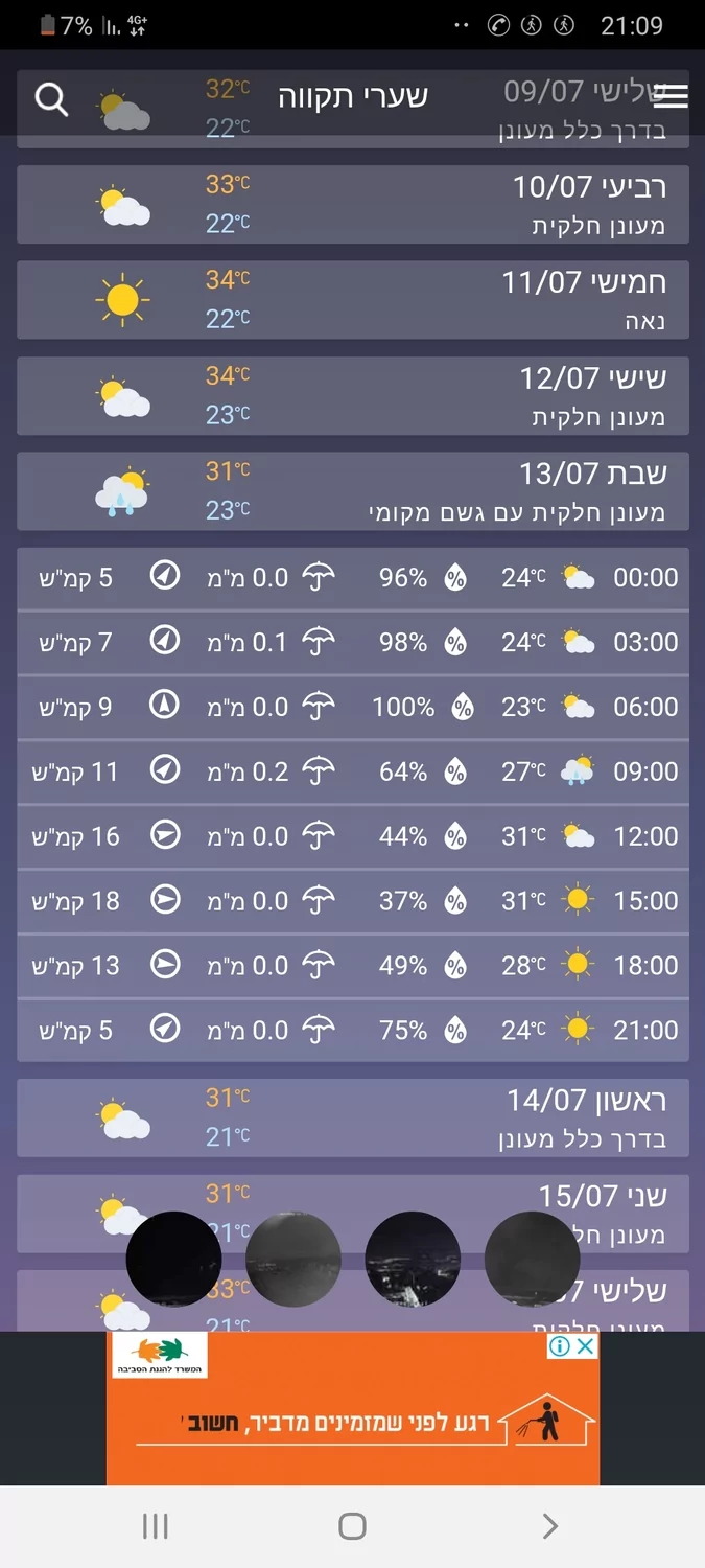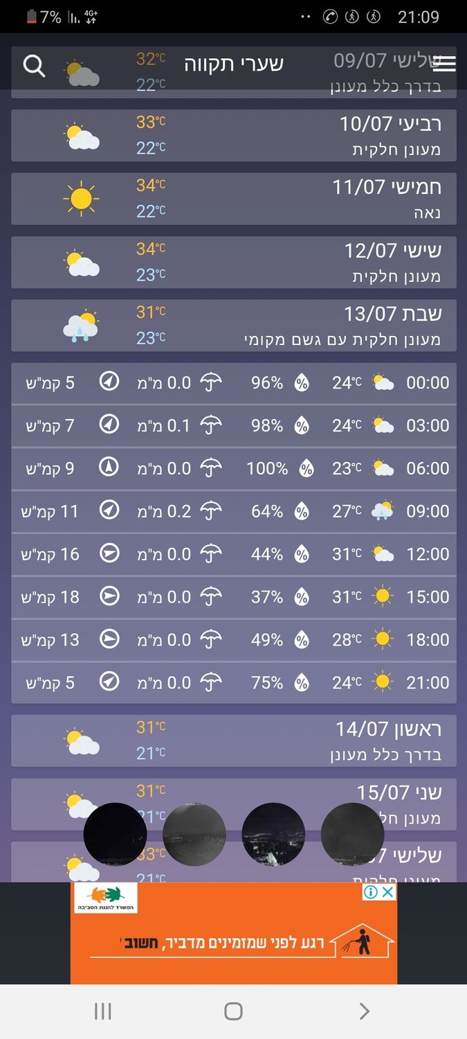 - דיווחי מזג האוויר יום שלישי 9/7/2019 אלון