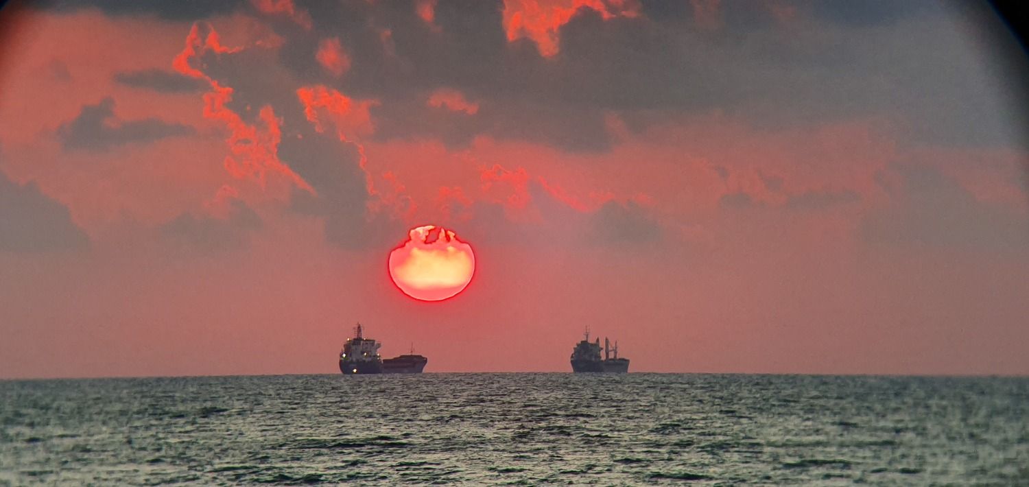 - שקיעה מרהיבה במפרץ חיפה לפני זמן קצר עודד