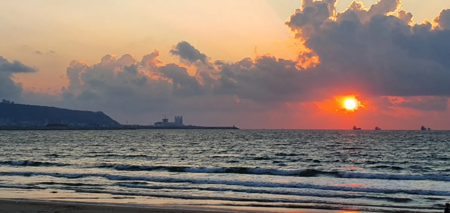 שקיעה מרהיבה במפרץ חיפה לפני זמן קצר