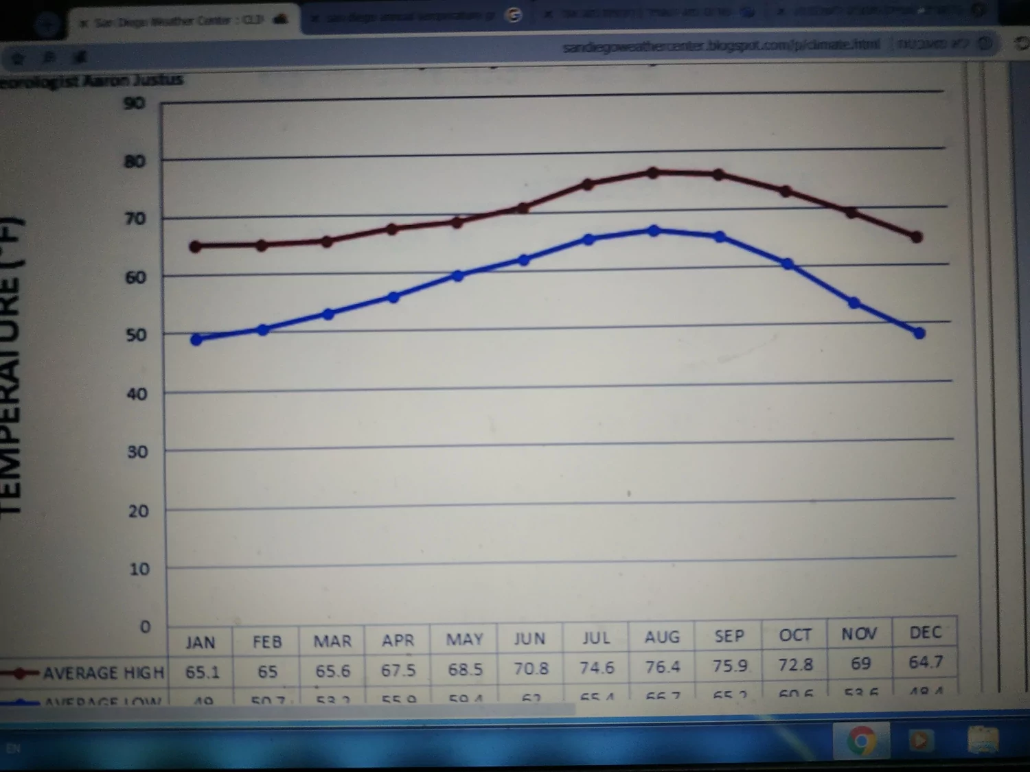 בסן דייגו כ- 10 מעלות פרנהייט בממוצע