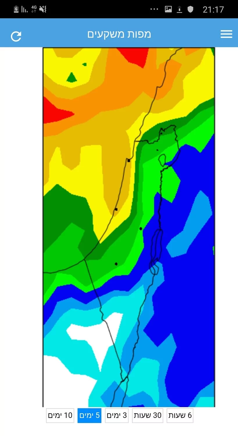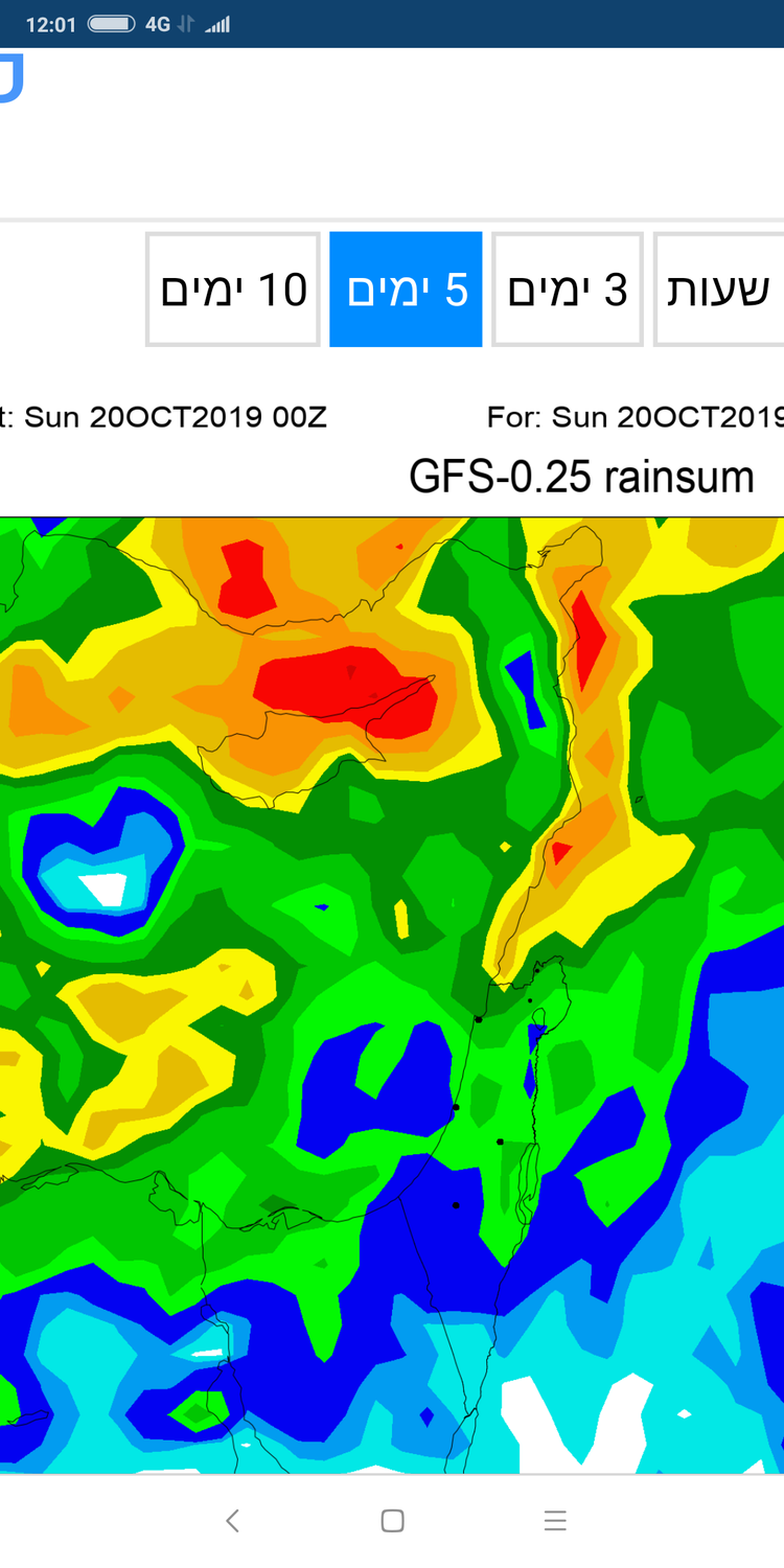 - תחזית גשם לחמישה ימים -GFS חנוך א
