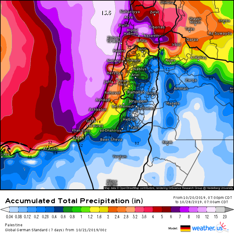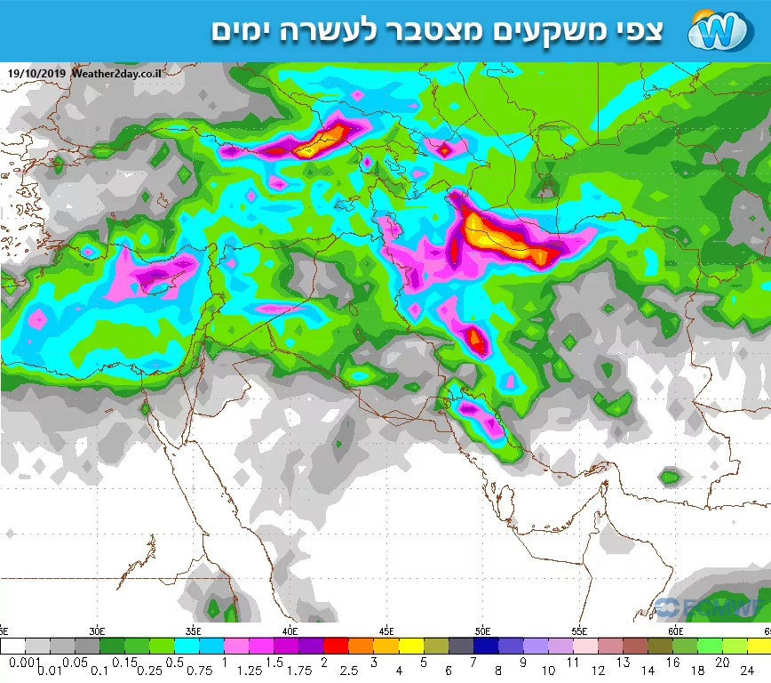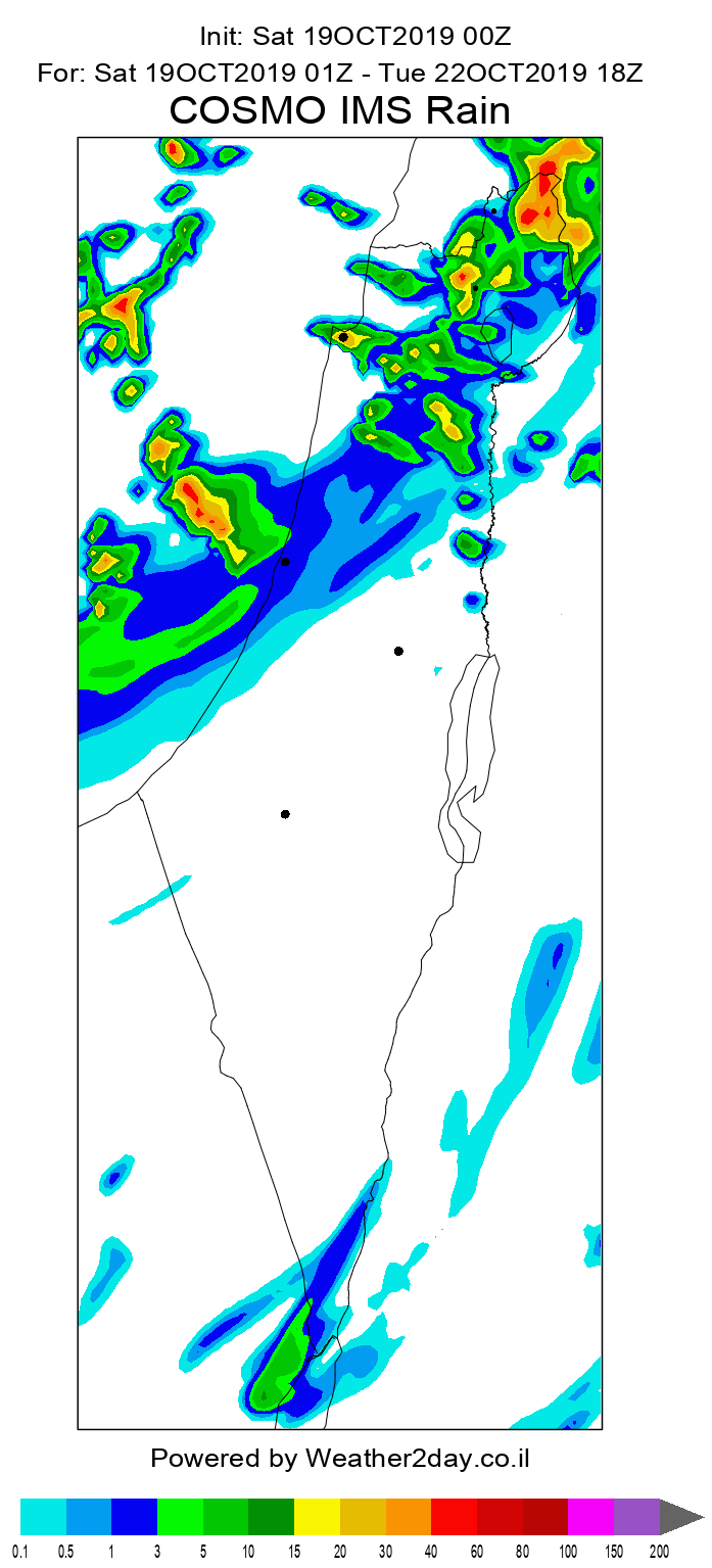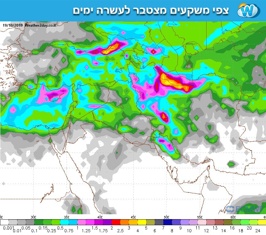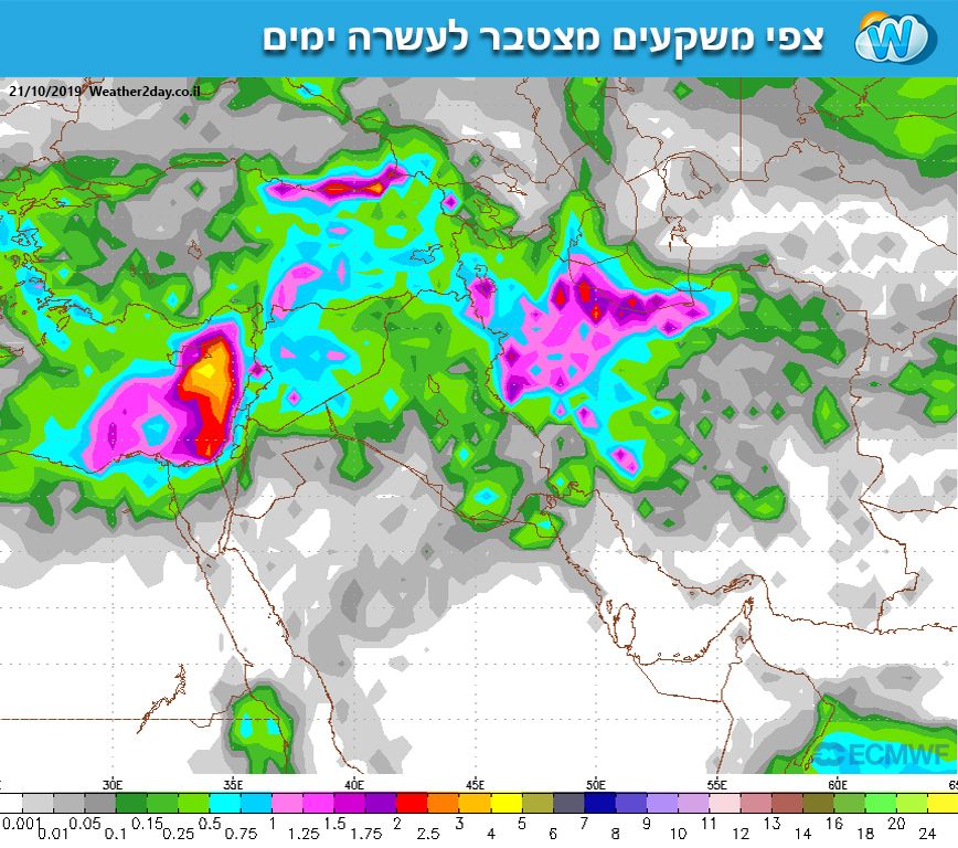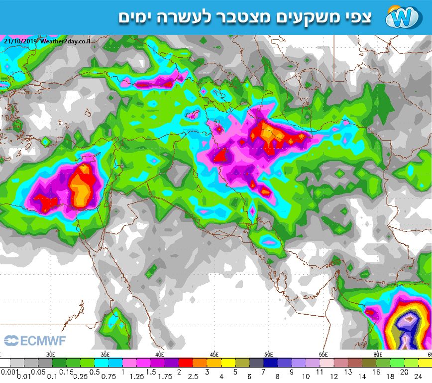 - מפת המשקעים של ECMWF הבוקר (00Z 21/10) Weather2day
