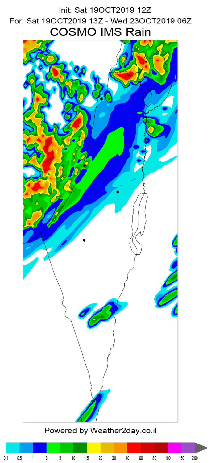 - קוסמו מראה שהגשם ייכנס לרוב הצפון תום
