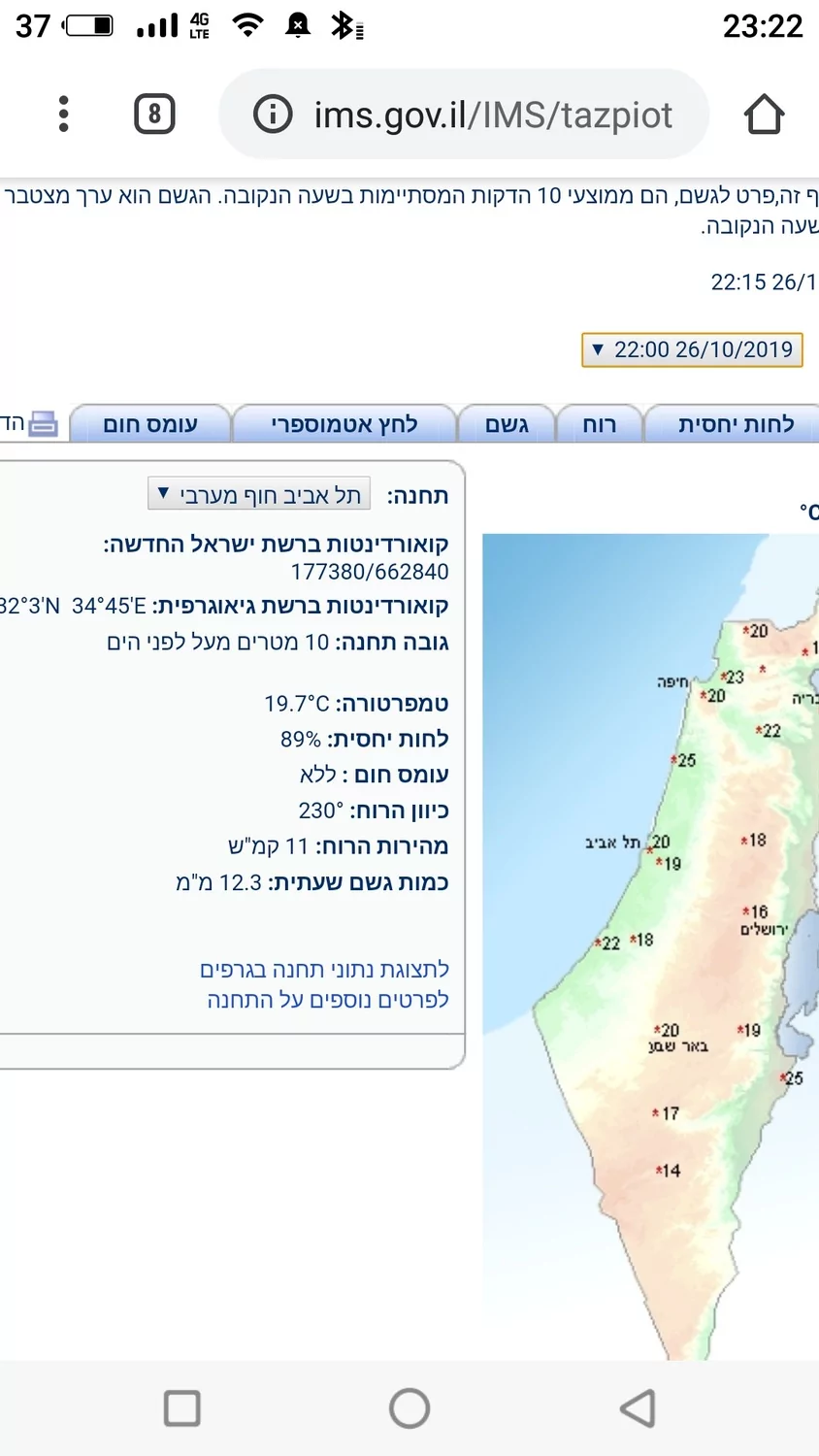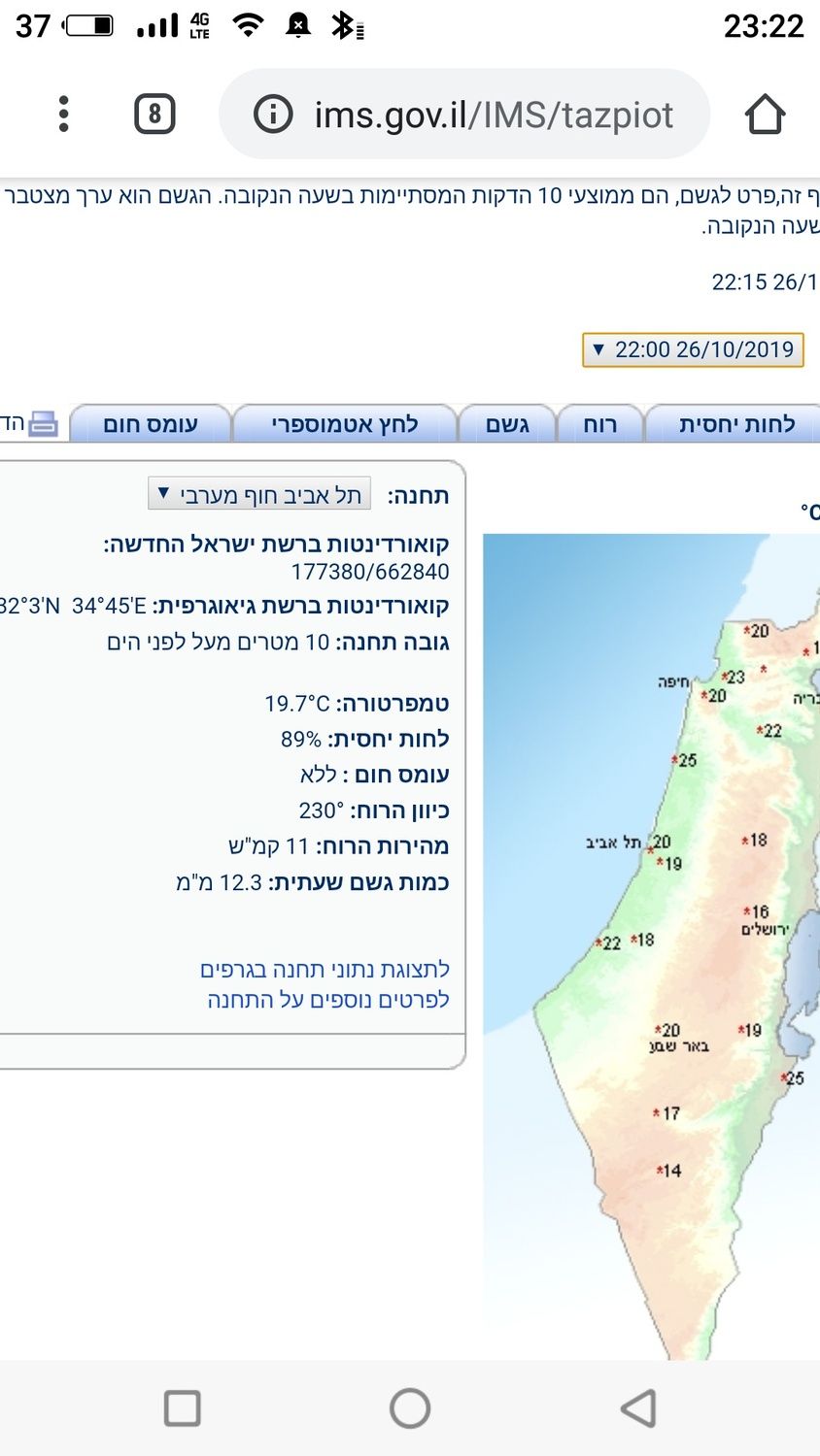 - נתונים רשמיים של השמ''ט 12.3 מ''מ בתל אביב חוף בשעה האחרונה! חי טל