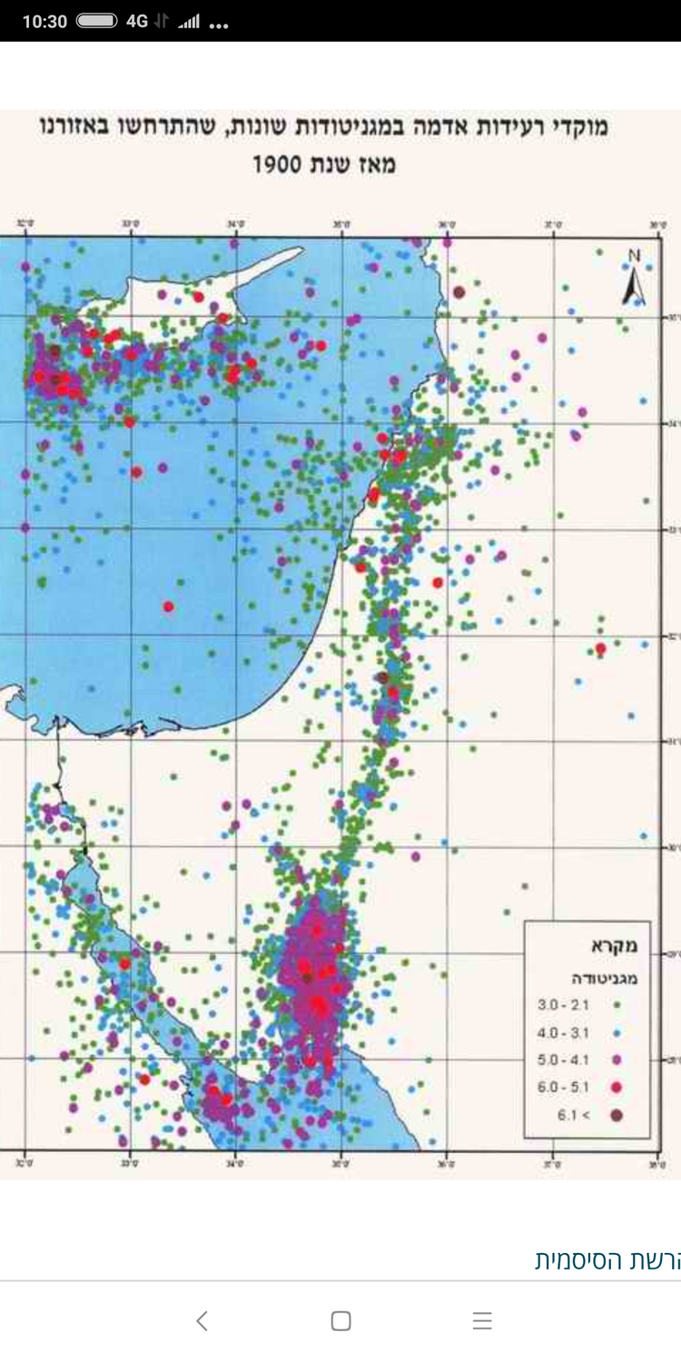 - מפת רעידות האדמה מאז 1900 חנוך א