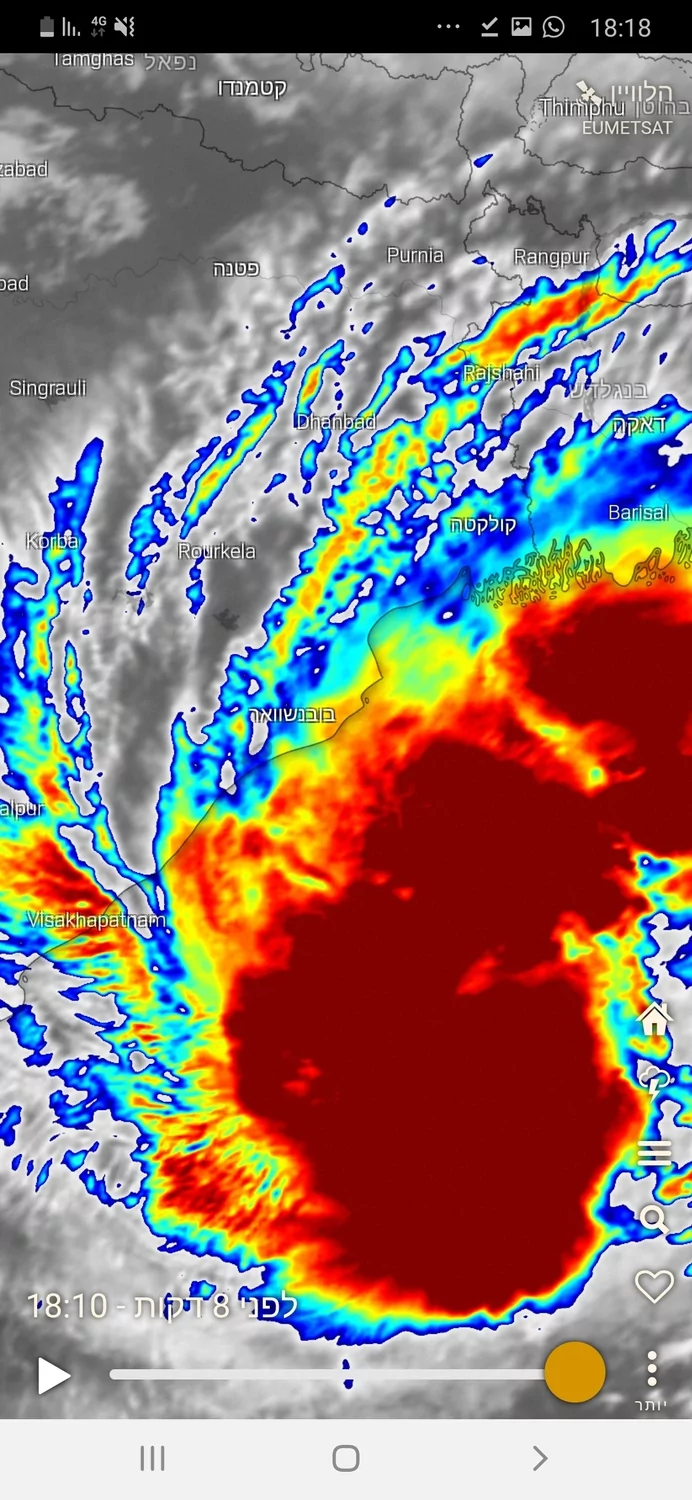 "Matmo" כעת ציקלון בדרגה 2 וצפויה להגיע מחר לבנגלדש בדרגה 1. הכמויות הצפויות הן עד כ-250 מ"מ.