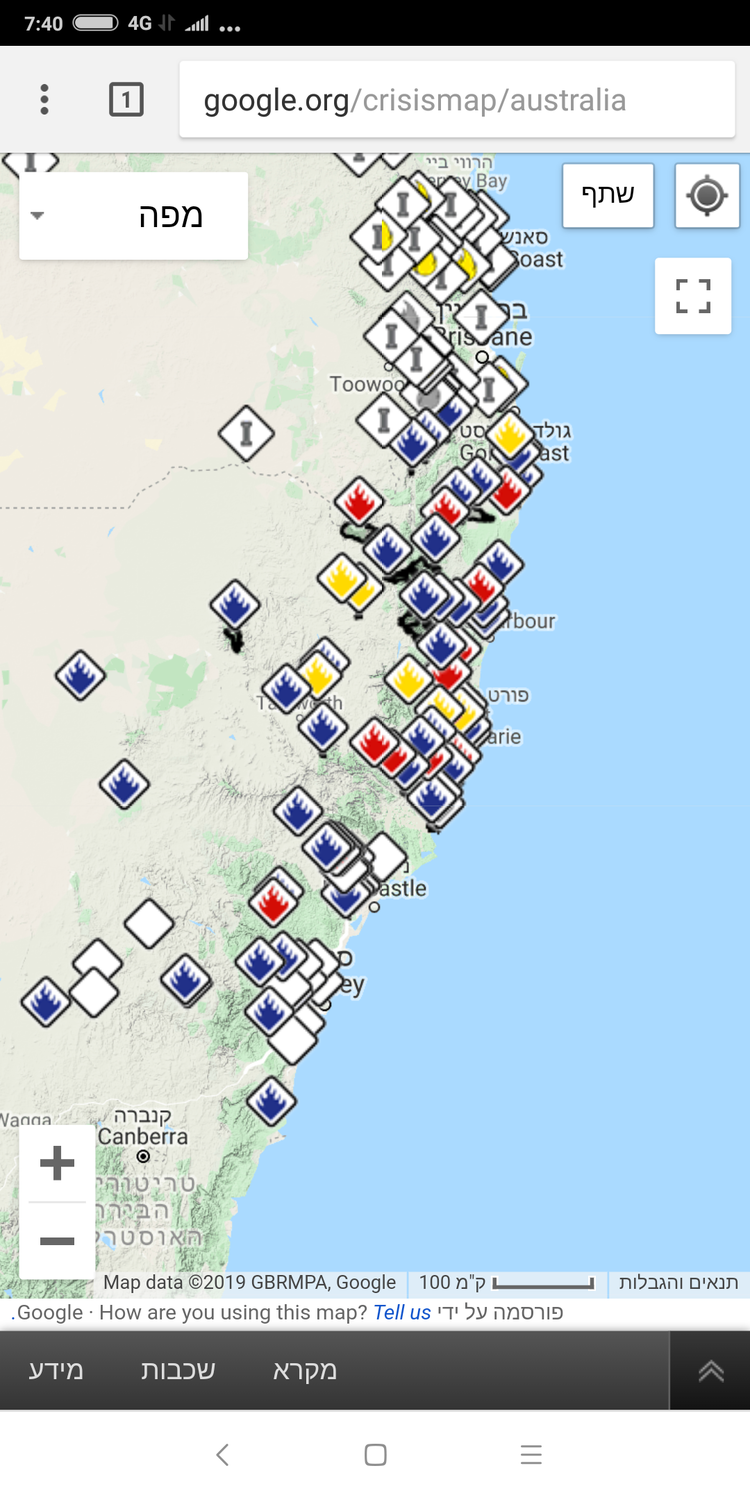 מפת אזעקות הטילים אצלנו יותר צפופה ממפת מוקדי האש באוסטרליה