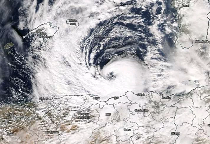 אני לא יודע על זה הרבה, לפי מה שהבנתי מתפתחת סופה שנראית כמדיקן צפונית לאלג'יריה. הסופה אמורה להכנס לאלג'יריה הערב.