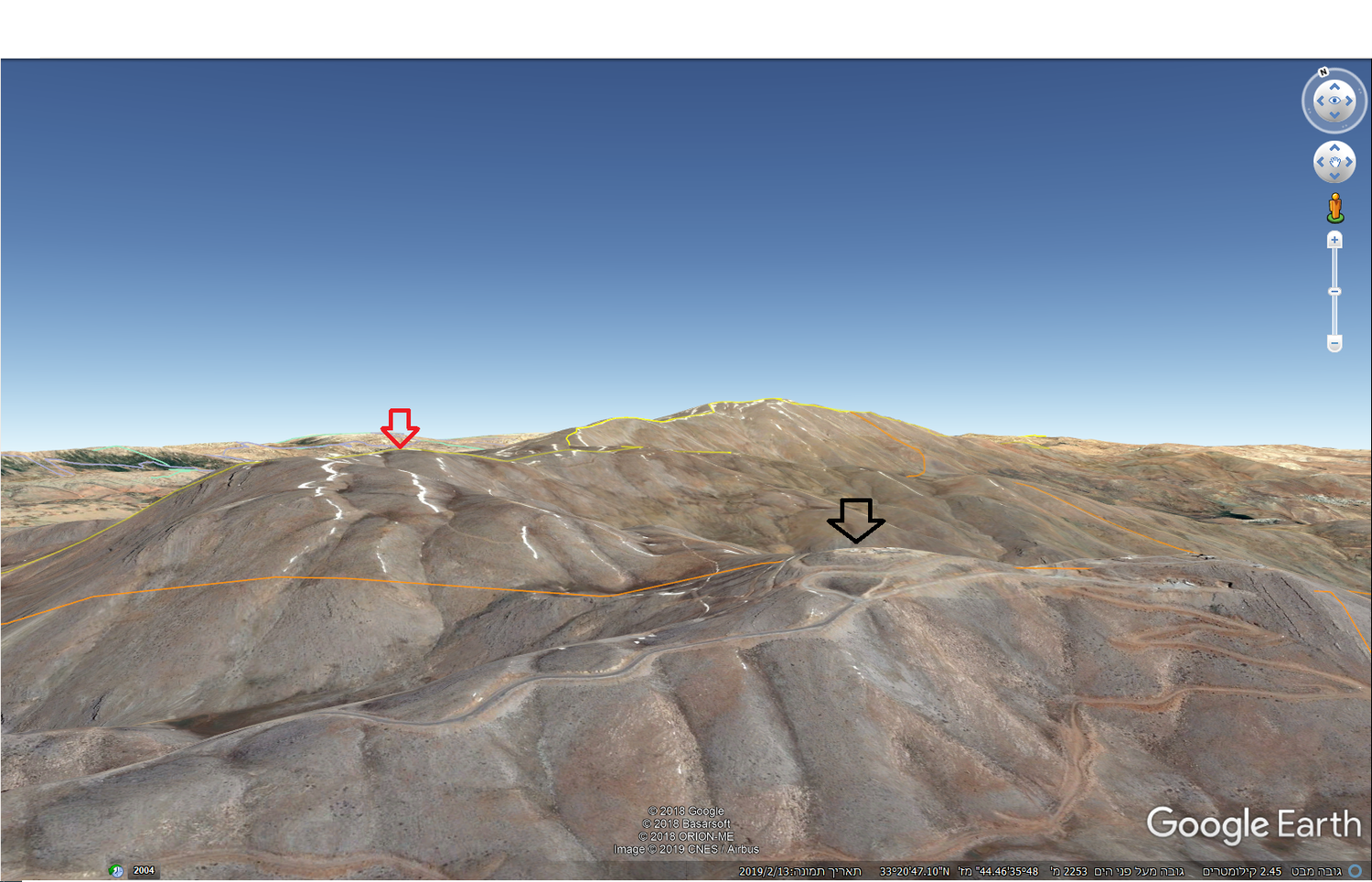- הנה הפסגה הישראלית ופסגת הר שיאון בגוגל ארץ ירין
