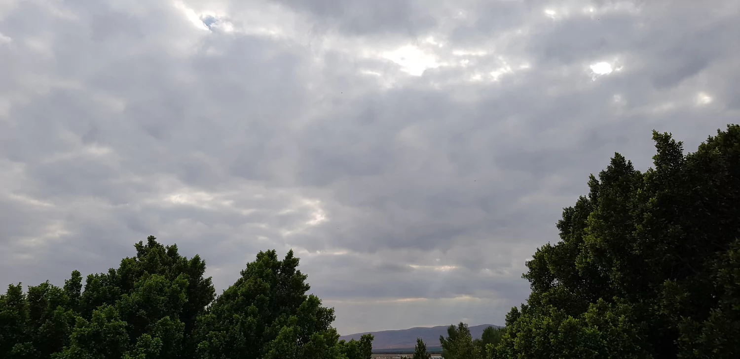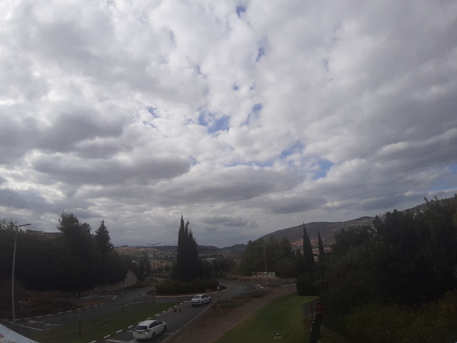 כל היום הייתה עננות מלאה ועכשיו לקראת שקיעה מתבהר. גם השמש לא חיממה כל כך במהלך היום וגם החום היחסי "בורח" בלילה כשהעננים הולכים.