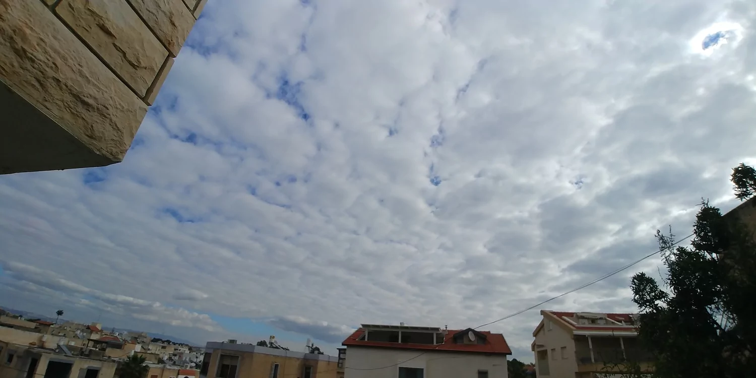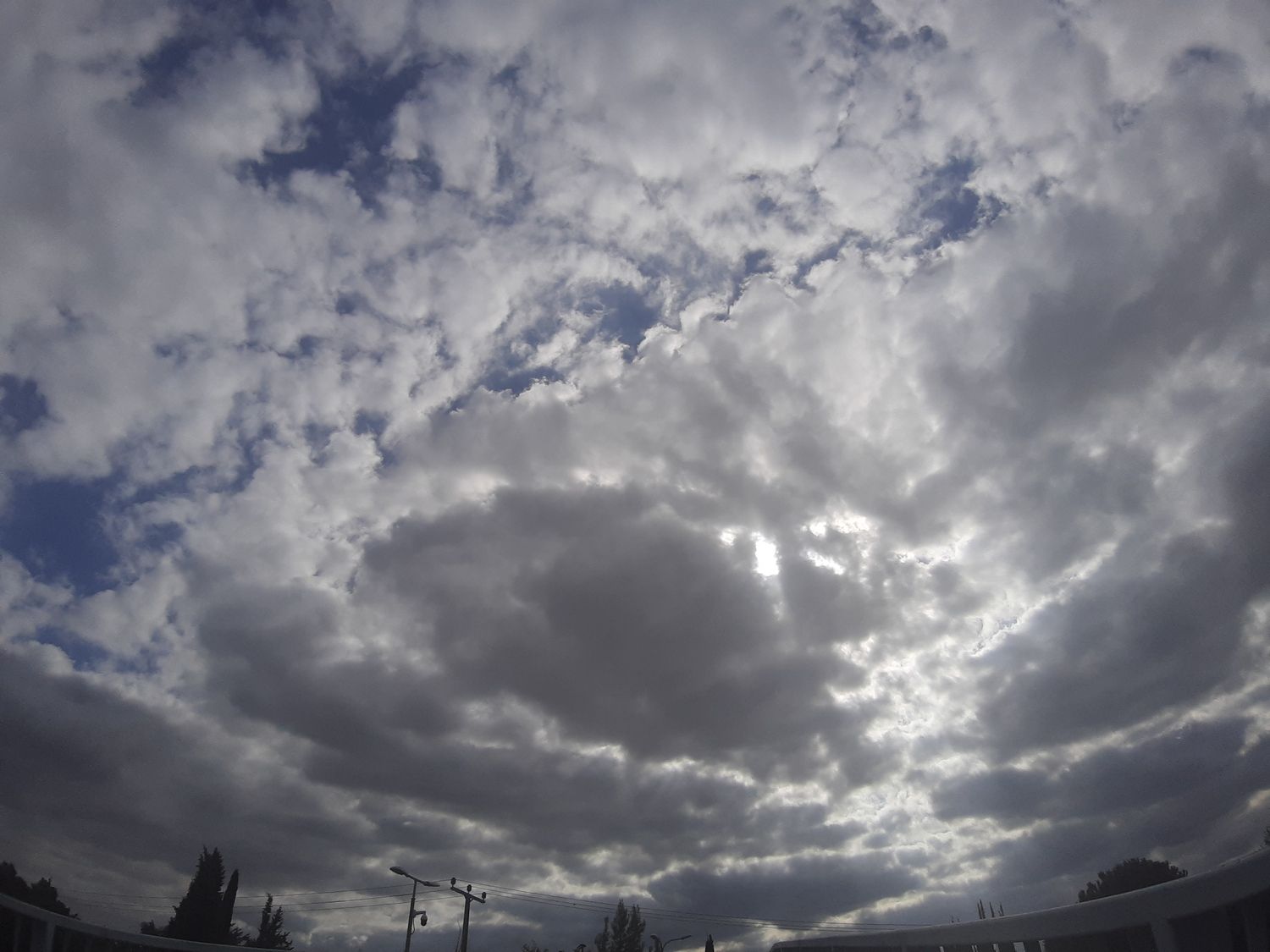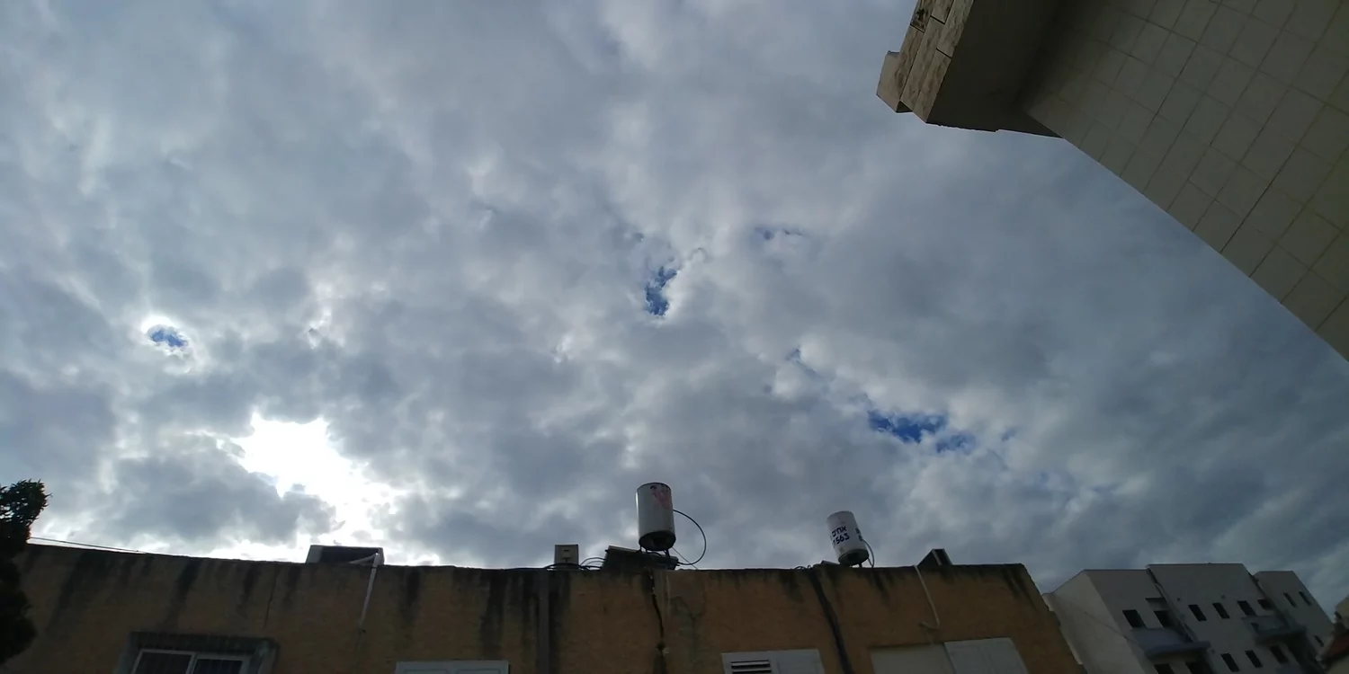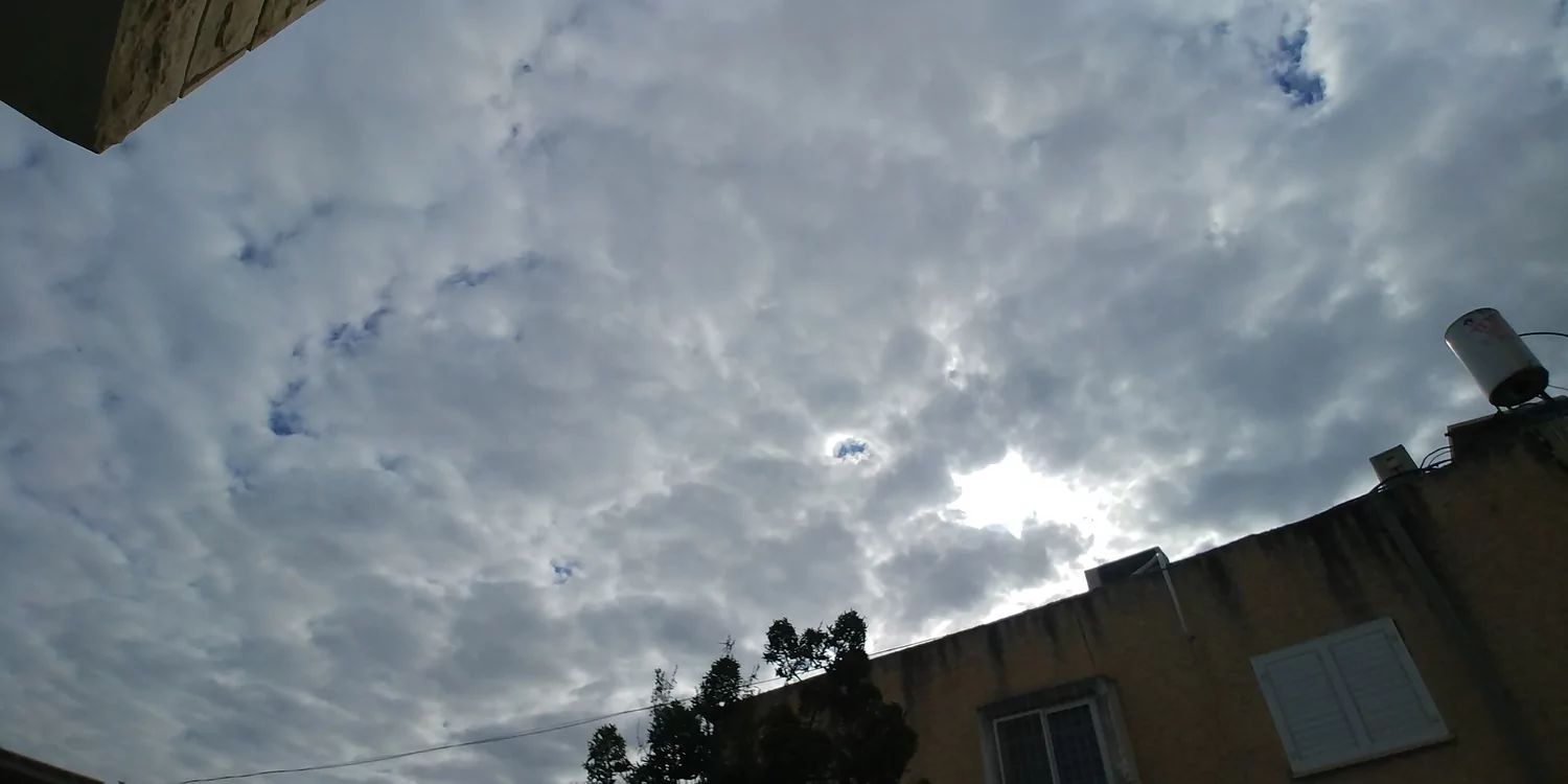 החל ''להתבהר'' ממש מעט, רואים בתמונות שיש חורים באלטוקומולוסים אך גם רואים שהצד של השמש עדיין מכוסה בעננות אפורה וכבדה יותר