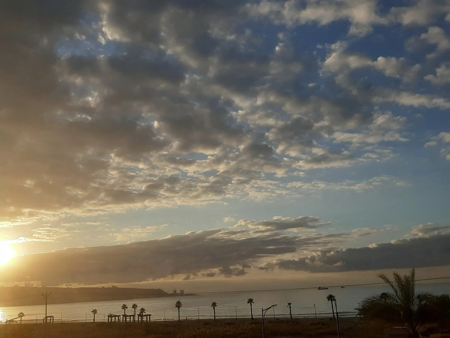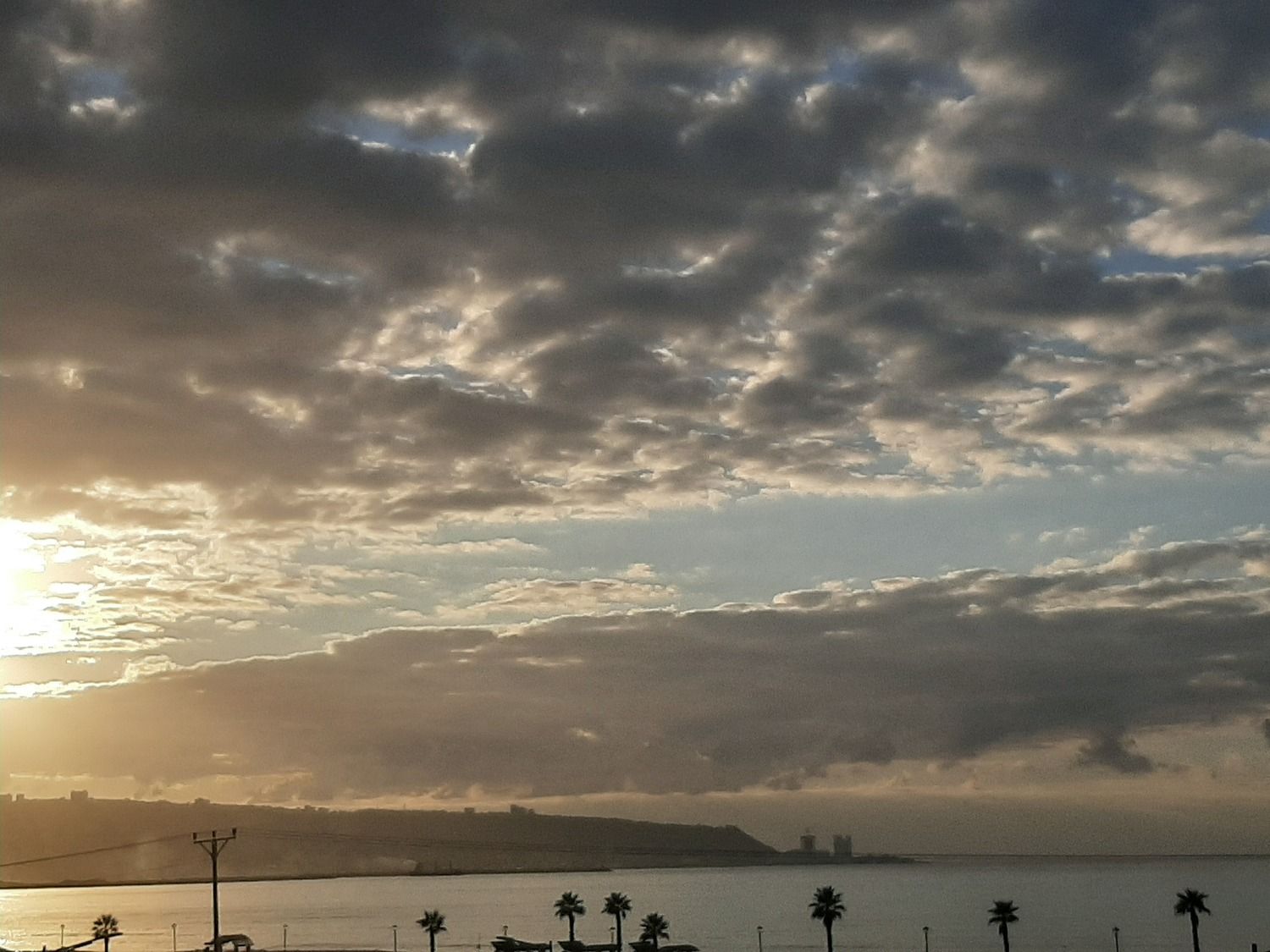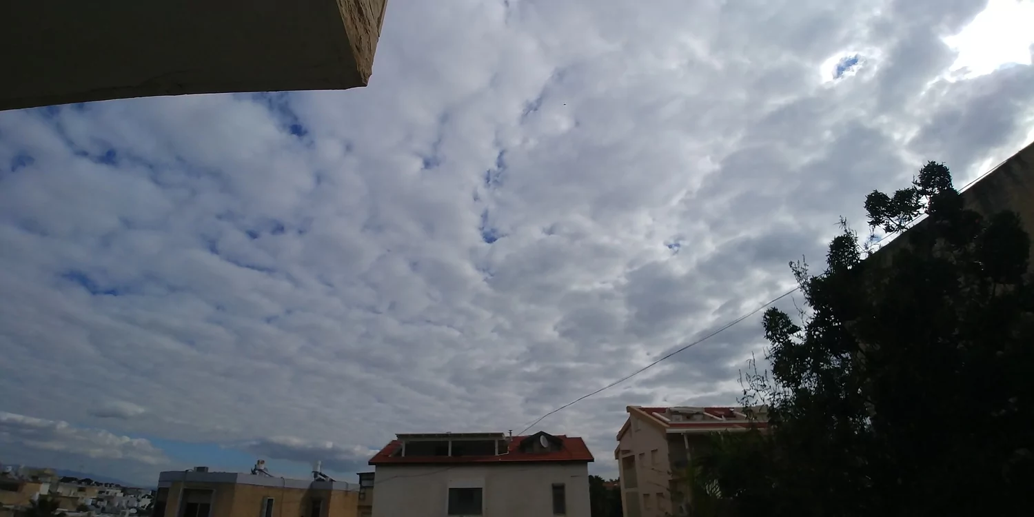 החל ''להתבהר'' ממש מעט, רואים בתמונות שיש חורים באלטוקומולוסים אך גם רואים שהצד של השמש עדיין מכוסה בעננות אפורה וכבדה יותר