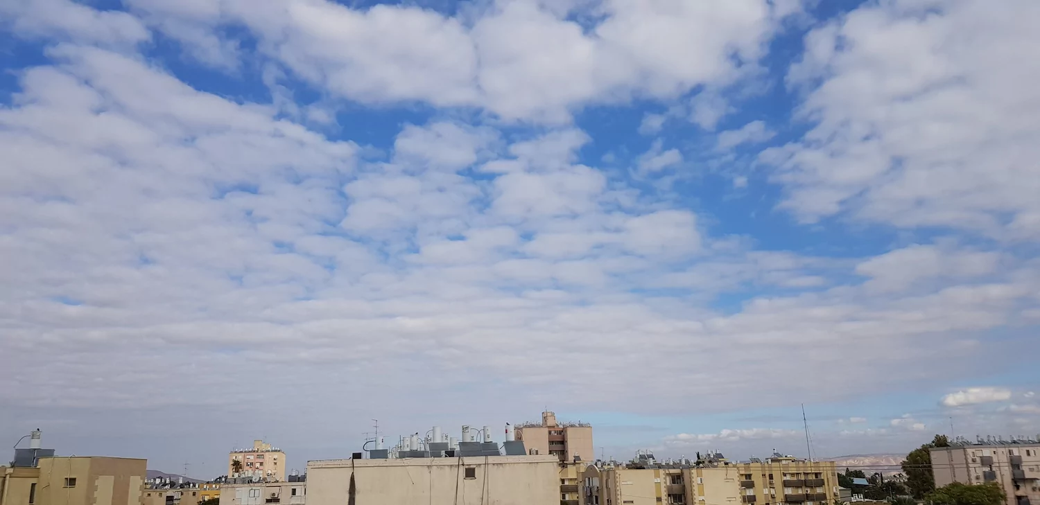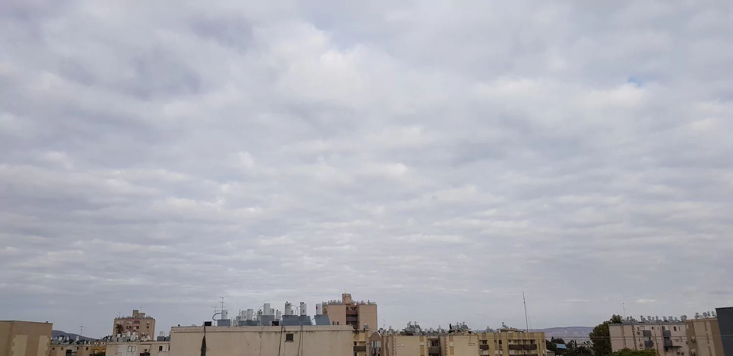אלא שכל הצד המערבי מכוסה כיסוי מלא של אלטוקומולוסים ואף האופק היותר רחוק מעט אפרורי, בנוסף בתמונת הלווין העדכנית רואים שיש מעלינו שכבה עבה של עננות שמכסה חלקים נכבדים מהארץ כאשר יש עוד ממנה בים. לפי התצ"ל השמים אצלך יתמלאו בקרוב שוב באלטוקומולוסים.